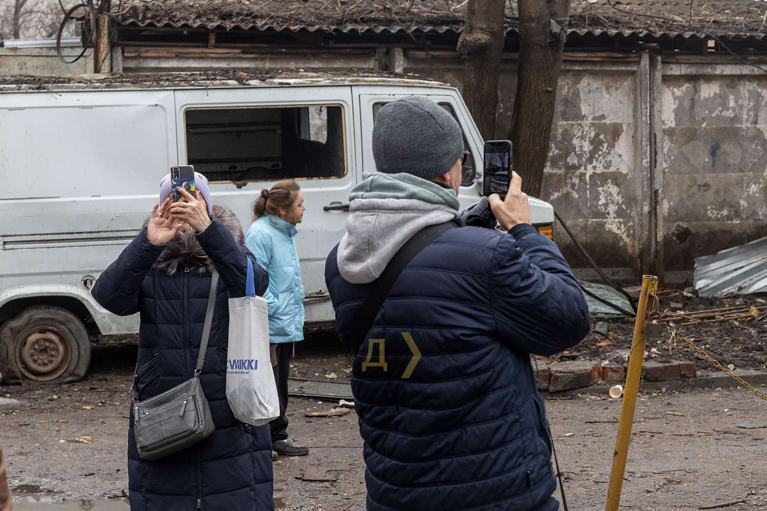 «А бомбили досить часто і ми не знали, що робити. І, до речі, тривогу ми не чули. Сюди прилетіли якісь реактивні «шахеди». Ми дуже довго відкривали ці двері, потім врешті-решт відкрили», — поділився місцевий житель Юрій Савелійович.