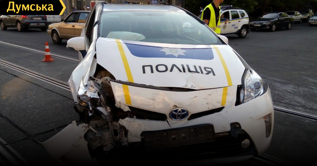 Тройное ДТП в центре Одессы: в полицейский «Приус» врезался внедорожник «Митсубиси» и перевернулся