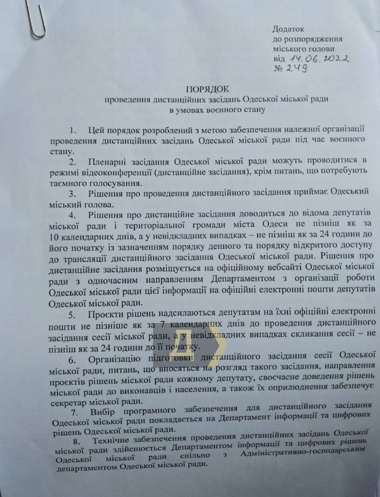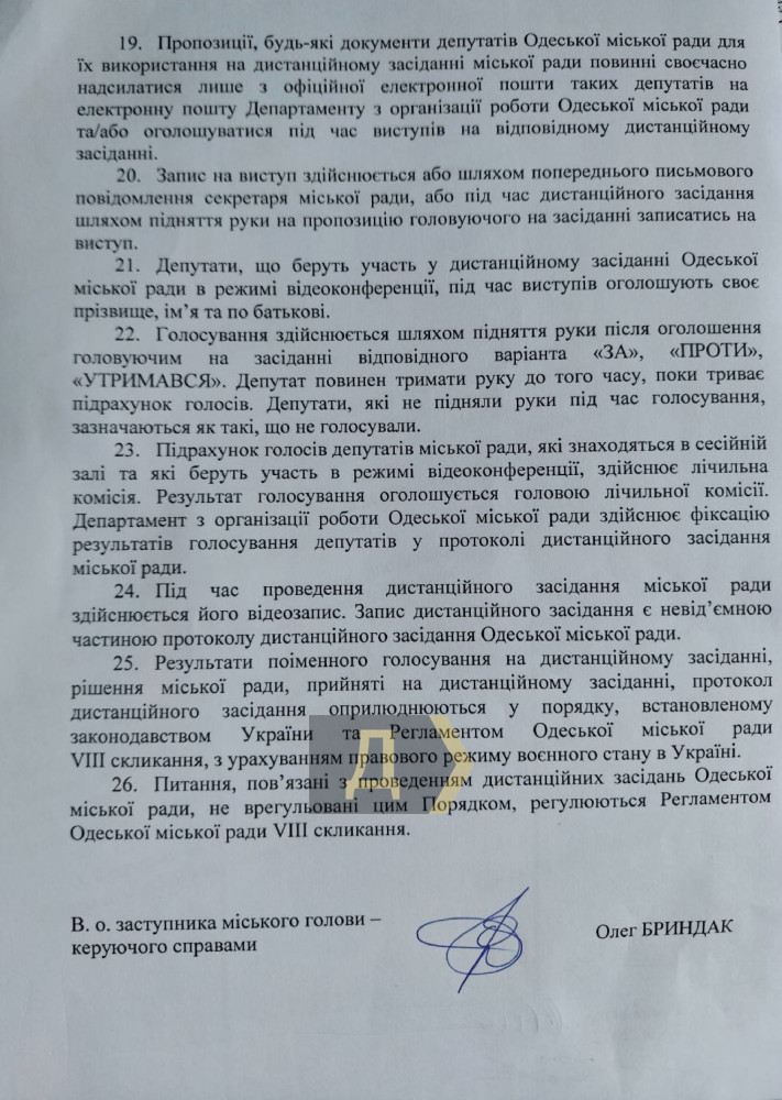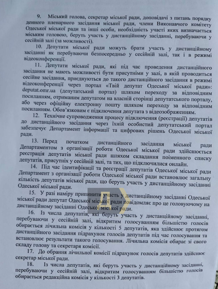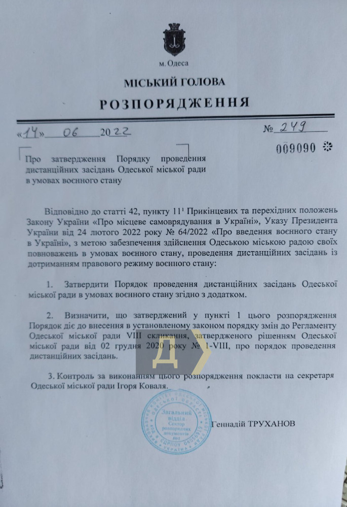 Труханов решил проводить сессии горсовета дистанционно: многие депутаты против (документ)Сессии Одесского горсовета решили проводить дистанционно, в режиме видеоконференции. Соответствующее распоряжение подписал на днях мэр Геннадий Труханов. Также он утвердил временный порядок проведения пленарных заседаний. Отмечается, что это связано с военным положением в стране. Ближайшая дистанционная сессия должна состояться 29 июня. Между тем часть депутатов категорически против «дистанционки». В частности, отказывается участвовать в таких сессиях фракция «Европейской Солидарности». «Верховная Рада собиралась в обычном режиме даже в самые трудные времена, когда враг стоял под Киевом, — заявил «Думской» лидер фракции Алексей Потапский. — И ведь это важнейший орган власти в нашей стране. Разве депутаты горсовета ценнее народных? Мы не знаем, где сидят те люди, которых нет в Одессе, а это, кстати, в основном шарийцы и ОПЗЖшники. Может, они в России сейчас. Может, на них давление оказывается. Как они могут участвовать в управлении городом? Распоряжаться городским имуществом. В общем, мы категорически против». СМЕРТЬ РОСІЙСЬКИМ ОКУПАНТАМ! Помітили помилку? Виділяйте слова з помилкою та натискайте control-enter |