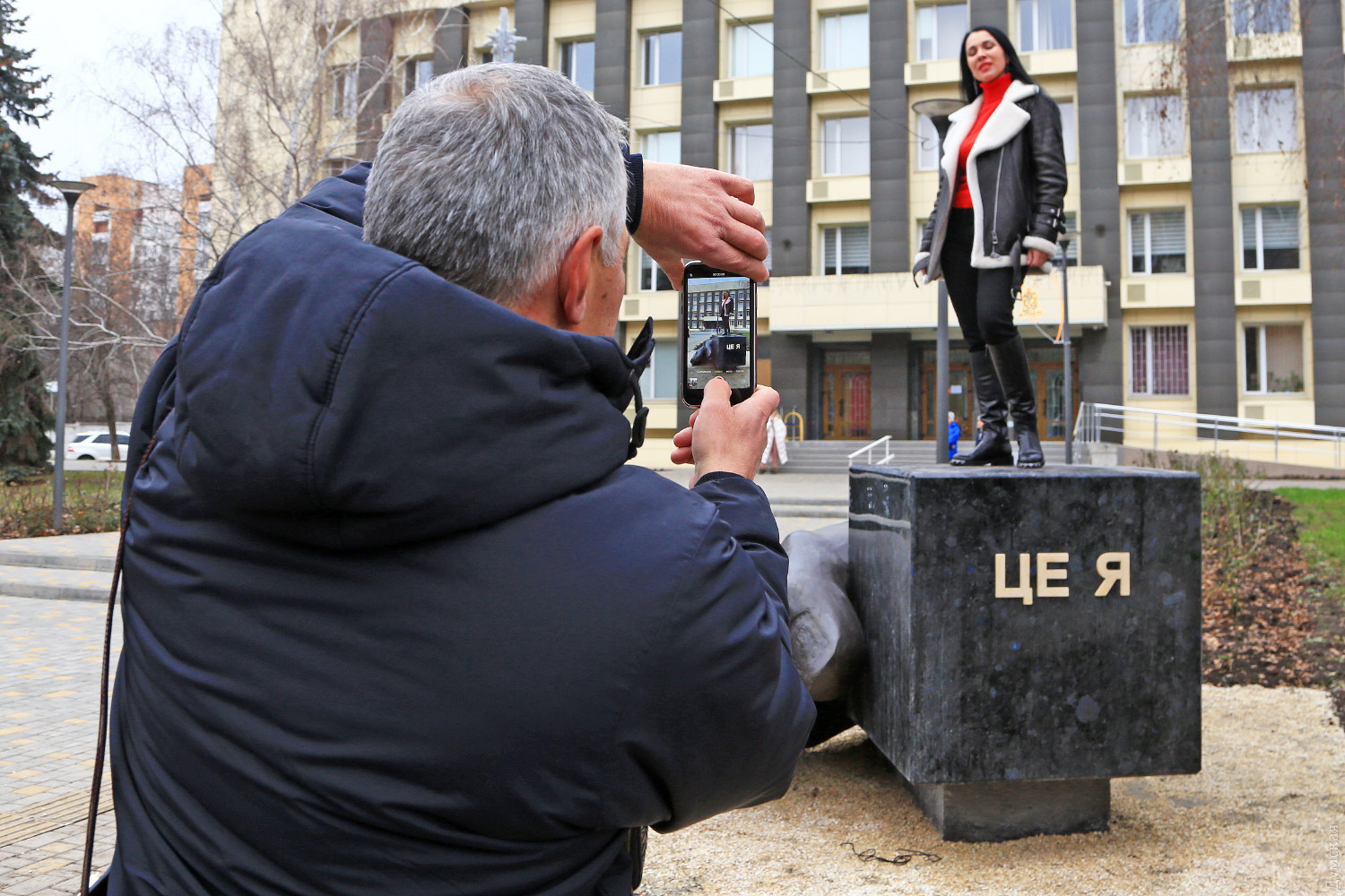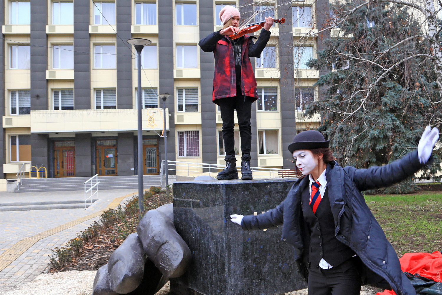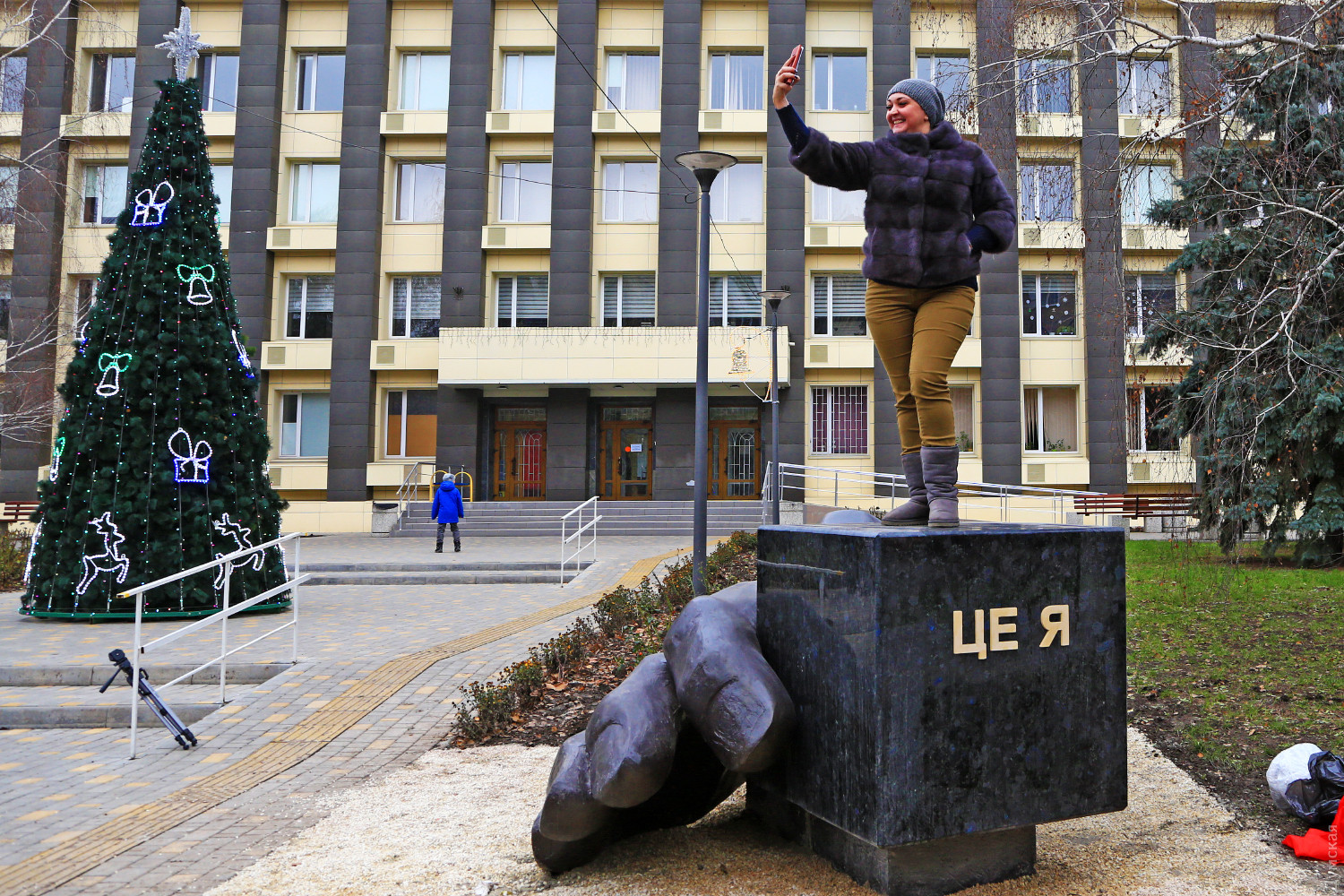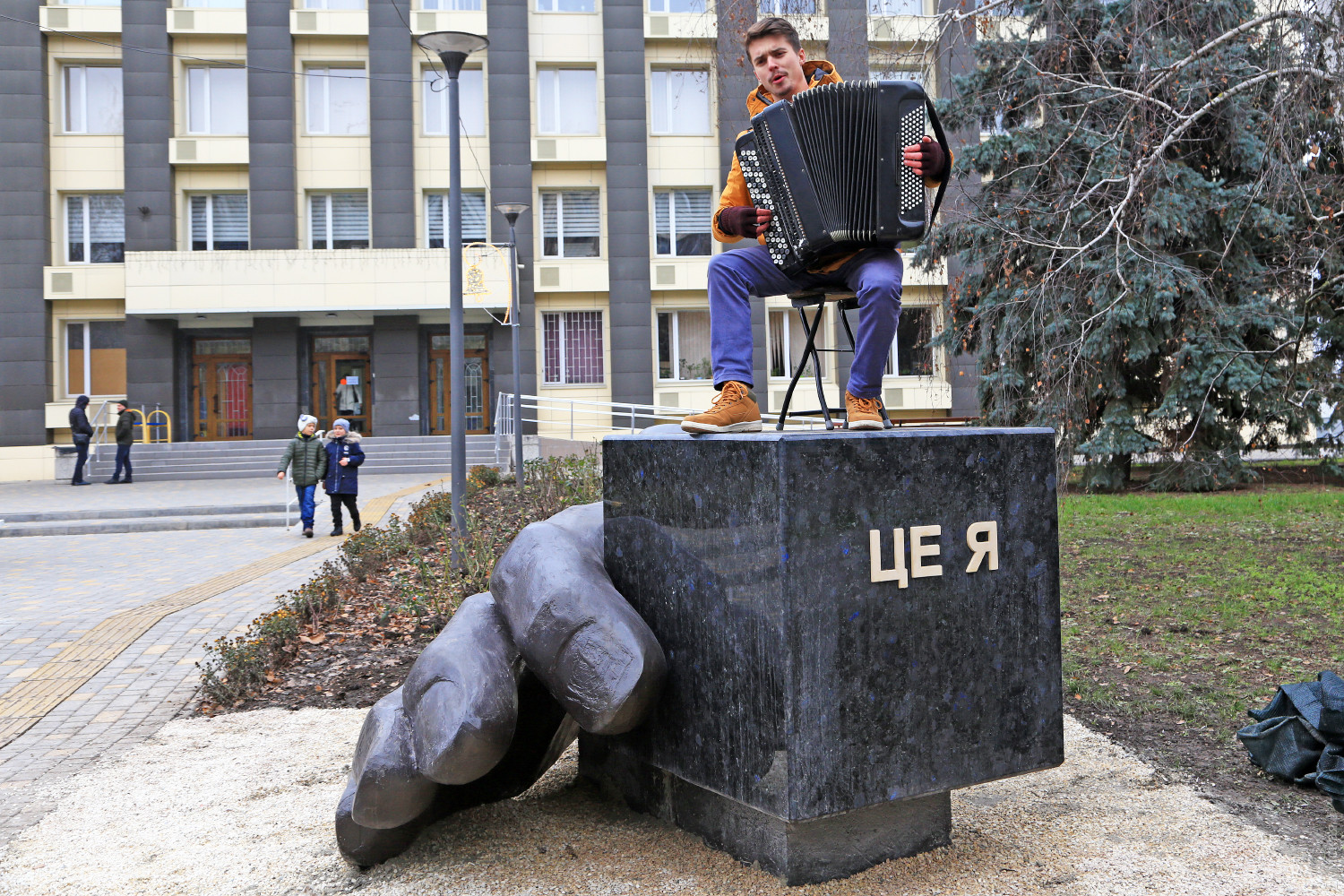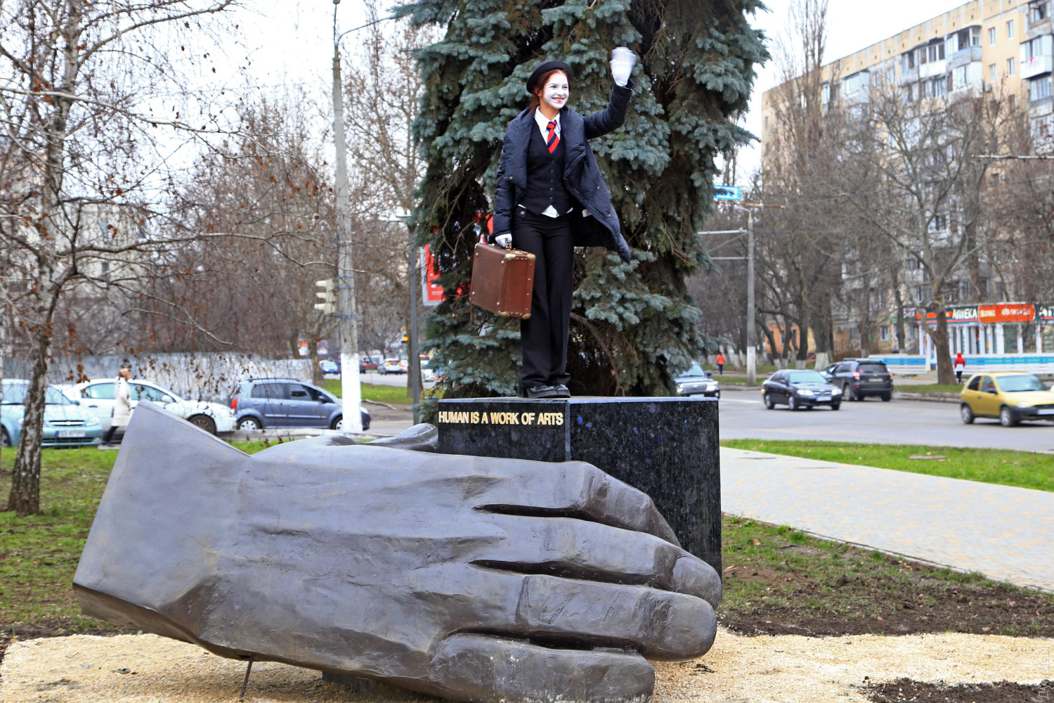 Открытие очередного арт-объекта одесского скульптора Андрея Любова состоялось сегодня возле Киевской райадминистрации. Это рука, которая держит квадрат, по задумке автора, превратившийся в черный куб.