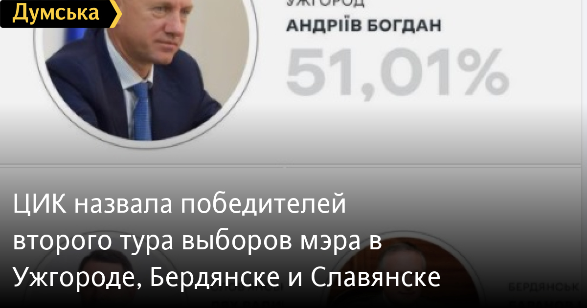 ЦИК назвала победителей второго тура выборов мэра в Ужгороде, Бердянске и Славянске