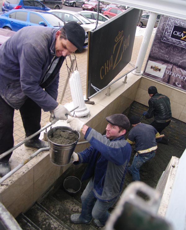 Как сообщает наш корреспондент, неизвестные лица залили сегодня ночью около 15 кубов цемента в подвал, который являлся входом в клуб «Сказка». Сегодня вечером пятеро работников долбили застывший цемент ломами и вычёрпывали его вёдрами.