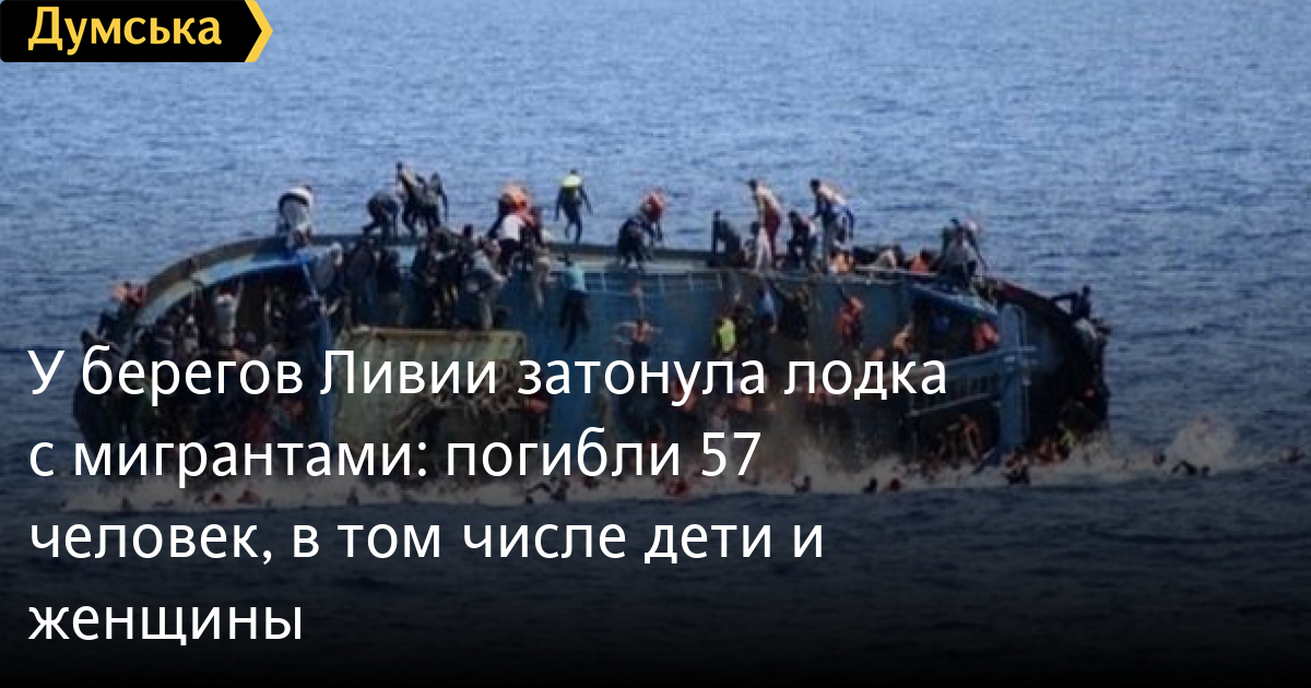 У берегов Ливии затонула лодка с мигрантами: погибли 57 человек, в том числе дети и женщиныУ берегов Ливии перевернулась лодка с мигрантами из Африки, в результате чего погибли по меньшей мере 57 человек, которые направлялись в Европу. Об этом пишет The Washington Post. По словам пресс-секретаря Международной организации по миграции Сафа Мсехли, на борту лодки было по меньшей мере 75 человек, в том числе женщины и дети. Среди погибших в результате инцидента 20 женщин и двое детей. 18 человек были спасены и доставлены на берег рыбаками и береговой охраной Ливии. Выжившие — граждане Нигерии, Ганы и Гамбии, рассказали, что лодка остановилась из-за проблем с двигателем, а потом перевернулась из-за плохой погоды. Данный инцидент стал вторым менее чем за неделю у берегов Ливии, в результате которого погибли мигранты, искавшие лучшей жизни в Европе. Ранее при аналогичных обстоятельствах погибли по меньшей мере 20 человек. СМЕРТЬ РОССИЙСКИМ ОККУПАНТАМ! Заметили ошибку? Выделяйте слова с ошибкой и нажимайте control-enter Новости по этой теме: 12 января 2022: Харьковские станции метро ожидает масштабная проверка: в вестибюле подземки на площади Конституции рухнул потолок (фото) 8 января 2022: В Одессе из офиса фирмы выкрали сейф с внушительной суммой денег, золотом и пистолетом 27 декабря 2021: В лесополосе под Киевом нашли тело главврача из Ровенской области: по подозрению в убийстве задержаны таксист с приятелем 23 декабря 2021: В Киеве задержали подозреваемых мошенников, которые обманывали на свиданиях мужчин ради денег |