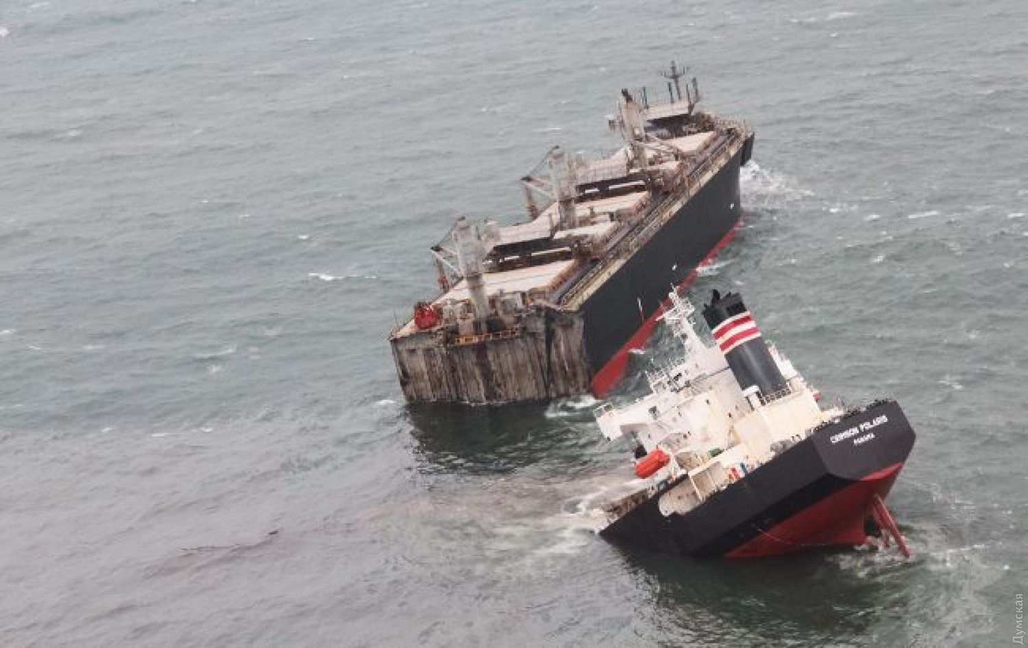 Сухогруз Crimson Polaris сел на мель, после чего раскололся на две части у берегов японского острова Хонсю. Об этом сообщает The Maritime Executive. Как стало известно, Crimson Polaris, загруженный 44 тыс. древесной щепы, зашел под панамским флагом в Японию из Таиланда. СМИ пишут, что был шторм и судно потеряло управление, в результате чего село на мель. Береговая охрана получила сигнал бедствия и эвакуировала 21 члена экипажа на вертолетах. Спасательная операция продолжалась пять часов. Сначала корпус сухогруза треснул, а потом судно и вовсе раскололось на две части в 2,5 милях от берега. В море вылилась нефть и масло, их количество пока установить не удалось. Судно построили в 2008 году, оно принадлежит компании MI-Das Line. Его специально оборудовали для перевозки древесной стружки, длина корабля — 200 метров, ширина — 32,3 метра. СМЕРТЬ РОССИЙСКИМ ОККУПАНТАМ! Заметили ошибку? Выделяйте слова с ошибкой и нажимайте control-enter |