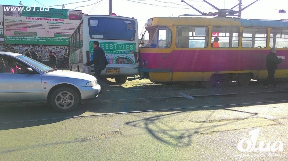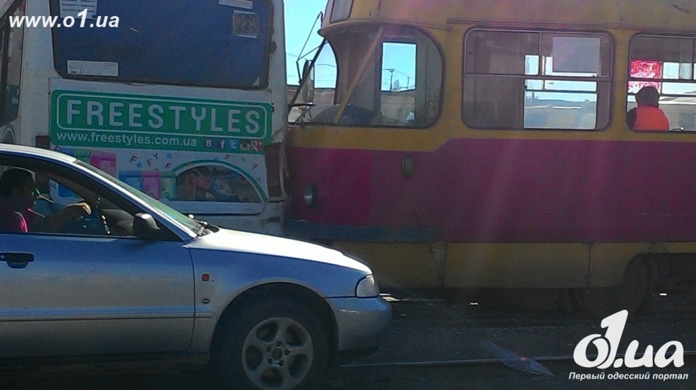 У одесского Привоза маршрутка столкнулась с трамваем