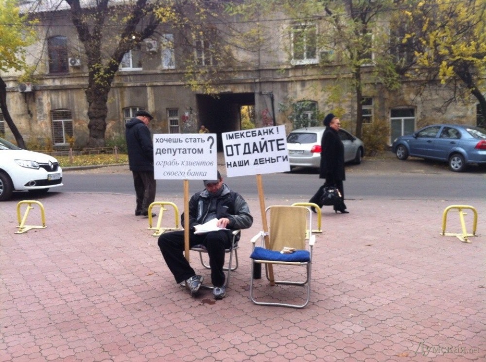 У отделений банка одесского нардепа — большие очереди и мономитинги (фотофакт)