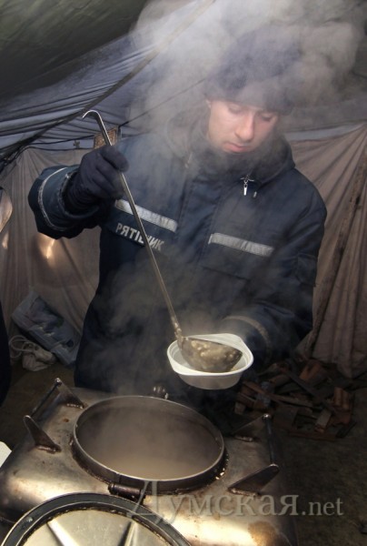Корреспондент «Думской» стал свидетелем того, как замерзшие и голодные одесситы входили в палатки с символикой ведомства Виктора Балоги и покидали их несолоно хлебавши.