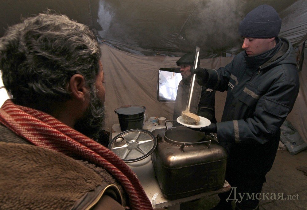 Далеко не все одесские бездомные могут отведать горячей каши в пунктах обогрева МЧС, развернутых спасателями во всех районах города.