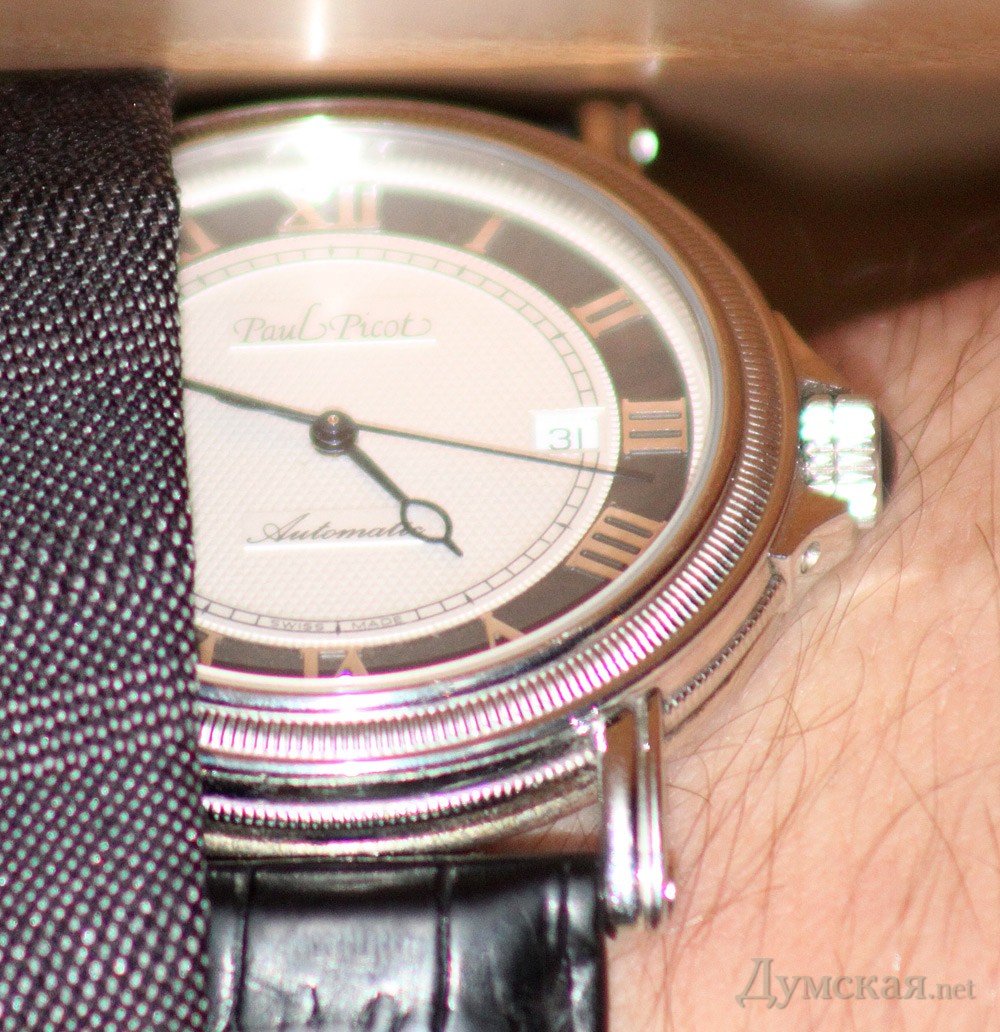 Наши корреспонденты разглядели на руке начальника департамента транспортного комплекса, связи и организации дорожного движения Александра Сошенко, который вел сегодняшние общественные слушания, довольно дорогие швейцарские часы.
