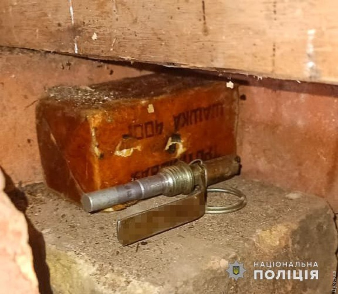 Поліція затримала 42-річного жителя Біляївської громади, який зберігав у себе в приватному будинку 400-грамову тротилову шашку, гранату Ф-1 і два запали, а також 32 набої калібру 9-мм.