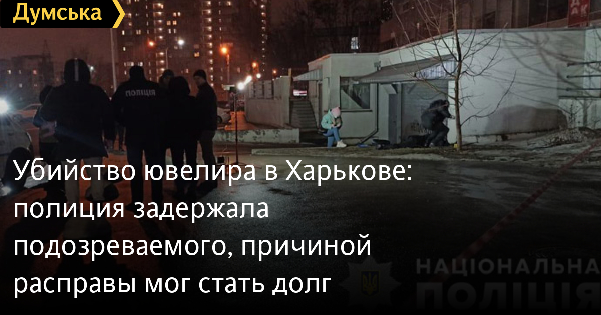 Убийство ювелира в Харькове: полиция задержала подозреваемого, причиной расправы мог стать долгХарьковская полиция задержала подозреваемого в убийстве мужчины, которое произошло вечером 22 февраля. Об этом сообщила пресс-служба полиции Харьковской области. Там отметили, что нападающим оказался 50-летний мужчина. Его обнаружили и задержали за пределами Харькова. Сведения о преступлении внесены в Единый реестр досудебных расследований по ч. 1 ст. 115 (умышленное убийство) УК Украины. Санкция статьи предусматривает от семи до 15 лет лишения свободы. Правоохранители подчеркнули, что одной из версий, которую они отрабатывают является конфликт из-за денежного долга. «Личность потерпевшего установлена. Это житель города Харькова 1981 года рождения. Установлены свидетели происшествия», — заявил начальник следственного управления Сергей Чиж. Отметим, что по информации местных СМИ, убитый — ювелир Александр Чепурных, который является хозяином ЧП «Пантера», занимающегося производством и реализацией ювелирных изделий. СМЕРТЬ РОССИЙСКИМ ОККУПАНТАМ! Заметили ошибку? Выделяйте слова с ошибкой и нажимайте control-enter |