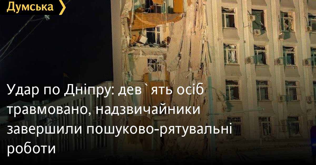 Удар по Дніпру: дев`ять осіб травмовано, надзвичайники завершили пошуково-рятувальні роботиПошуково-рятувальні роботи на місці «прильоту» в Дніпрі завершилися. Унаслідок атаки росіян травми різного ступеня тяжкості дістали дев'ятеро осіб, серед яких двоє дітей, повідомив голова Дніпропетровської обласної військової адміністрації Сергій Лисак. Крім висотки та будівлі СБУ, ракета пошкодила ще чотири житлові будинки навколо. Одна багатоповерхівка, інші — двоповерхові. Зачепило й три адмінбудівлі та сім автомобілів. Житловий комплекс, на який припав основний удар, не був введений в експлуатацію. Там постраждали переважно будівельники. Крім того, вночі ворог бив по Нікопольщині. «Із важкої артилерії вдарив по самому Нікополю та Марганецькій громаді. Наслідки з'ясовуються. Але головне — місцеві жителі цілі», — написав Лисак. СМЕРТЬ РОСІЙСЬКИМ ОКУПАНТАМ! Помітили помилку? Виділяйте слова з помилкою та натискайте control-enter |