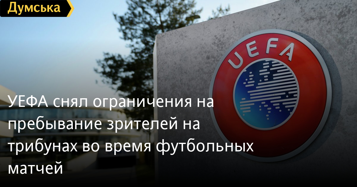 УЕФА снял ограничения на пребывание зрителей на трибунах во время футбольных матчейСоюз европейских футбольных ассоциаций (УЕФА) отменил введенные в прошлом году ограничения на пребывание зрителей на футбольных матчах. В заявлении ассоциации говорится, что теперь каждая страна должна принимать решение о допуске зрителей на матчи и их количестве на трибунах. Изменения были введены из-за изменения эпидемической ситуации в Европе – в разных странах уровень распространения коронавируса сейчас сильно отличается, что больше не позволяет всех регулировать одними правилами. Напомним, в октябре 2020 года УЕФА разрешил заполнять до 30% трибун во время футбольных матчей. СМЕРТЬ РОССИЙСКИМ ОККУПАНТАМ! Заметили ошибку? Выделяйте слова с ошибкой и нажимайте control-enter |