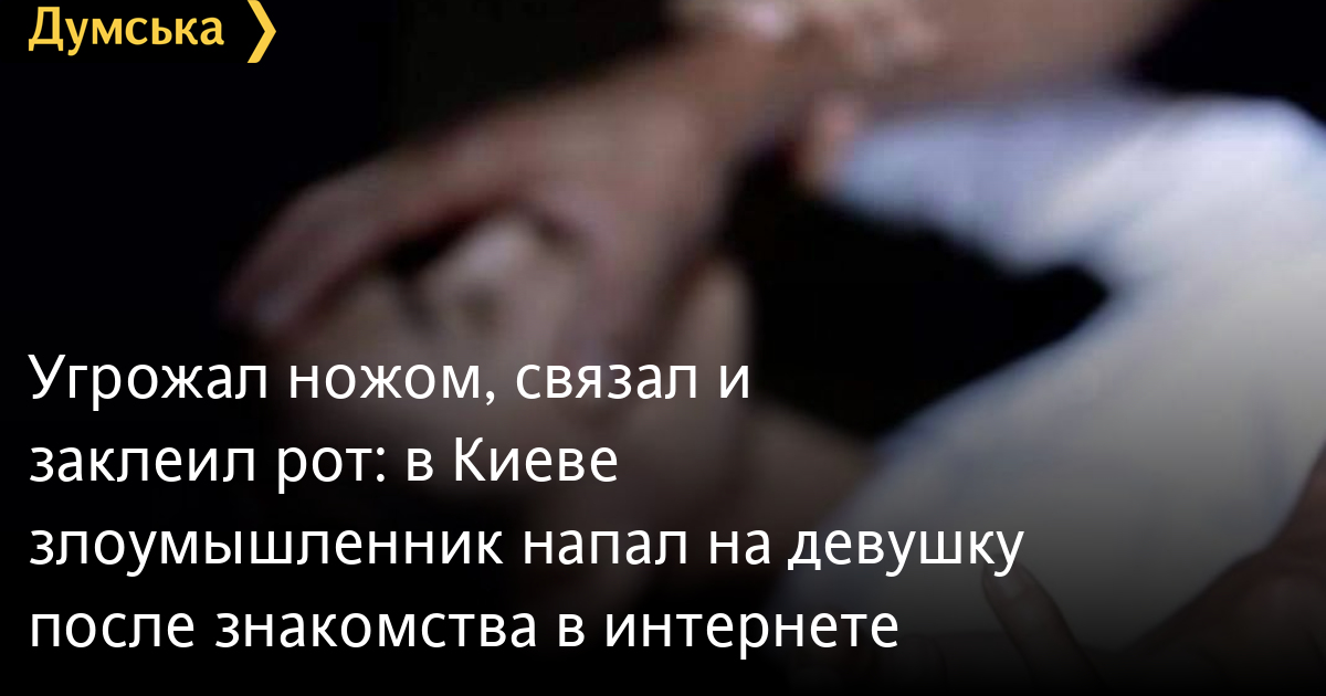 Угрожал ножом, связал и заклеил рот: в Киеве злоумышленник напал на девушку после знакомства в интернетеПодозрение в разбойном нападении предъявила столичная прокуратура ранее судимому мужчине, который напал на киевлянку после знакомства в интернете. Как сообщает пресс-служба Киевской городской прокуратуры, 24-летняя потерпевшая познакомилась с подозреваемым на сайте знакомств и договорилась с ним о личной встрече. Оказавшись наедине, 39-летний киевлянин начал угрожать девушке ножом, связал ее и заклеил рот скотчем, чтобы она не звала на помощь. «Забрав у жертвы два мобильных телефона, деньги и другие личные вещи, злоумышленник совершил в отношении нее действия сексуального характера и скрылся», — сообщают в прокуратуре. Как выяснило следствие, агрессор ранее был судим. Его задержали и предъявили подозрение по ч. 1 ст. 187 УК Украины (разбой). Также решается вопрос о привлечении мужчины к ответственности за изнасилование. Прокуратура ходатайствует о взятии подозреваемого под стражу. СМЕРТЬ РОССИЙСКИМ ОККУПАНТАМ! Заметили ошибку? Выделяйте слова с ошибкой и нажимайте control-enter |