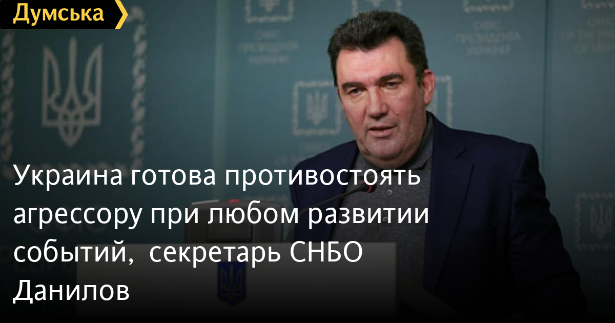 Украина готова противостоять агрессору при любом развитии событий, — секретарь СНБО ДаниловУкраина готова противостоять государству-агрессору при любом развитии событий, и ожидает жесткую реакцию цивилизованного мира на провокации РФ. Об этом заявил секретарь СНБО Украины Алексей Данилов по итогам визита украинской делегации на международный форум по безопасности Halifax International Security Forum в Галифаксе, Канада. При этом Данилов отметил важность консолидации усилий цивилизованного мира для противодействия агрессивной политике РФ. Сообщается, что украинская делегация приняла участие в сессии по теме «Ukraine: Liberty On the Line». Обсуждалась ситуация на украинских границах, важность продвижения евроатлантической интеграции Украины для обеспечения безопасности в регионе, необходимость жесткой реакции цивилизованного мира на провокации РФ. В ходе визита украинская делегация встретилась с руководством министерства национальной обороны Канады, делегацией сенаторов США. На встречах обсуждались актуальные угрозы и сотрудничество Украины с государствами-партнерами. СМЕРТЬ РОССИЙСКИМ ОККУПАНТАМ! Заметили ошибку? Выделяйте слова с ошибкой и нажимайте control-enter |