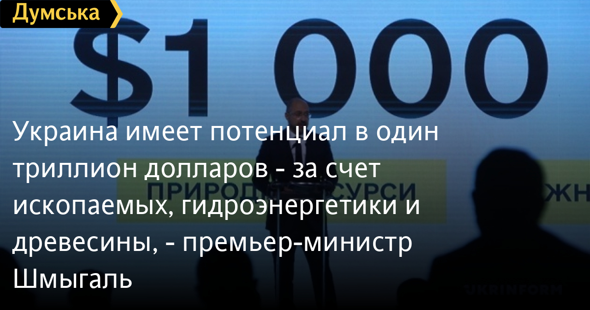 Украина имеет потенциал в один триллион долларов — за счет ископаемых, гидроэнергетики и древесины, — премьер-министр ШмыгальПо результатам экономического аудита правительство установило, что размер нереализованного потенциала Украины за последние 10 лет составляет один триллион долларов. Об этом заявил премьер-министр Денис Шмыгаль на презентации результатов аудита, пишет «Экономическая правда». По словам главы правительства, самую крупную долю в этой цифре занимают полезные ископаемые, и правильное использование недр может принести Украине 409 миллиардов долларов. «В Украине есть более 12 тысяч разведанных месторождений полезных ископаемых. И только треть из них разрабатывается. Фактически, это немного больше четырех тысяч участков, которые сегодня находятся в разработке», — заявил Шмыгаль. Он заявил, что увеличение добычи полезных ископаемых не означает увеличение экспорта за границу ископаемых в качестве сырья. Согласно результатам аудита, Украина не использовала свой земельный потенциал на 85 млрд долларов. «29 лет свободное распоряжение землей было ограничено, а значит, ее ценность была снижена в разы. За это время в государстве исчезло 5 млн га земли, развитие орошения и инвестиций в сельское хозяйство заторможено на десятилетия, а иногда остановлено совсем», — отметил Шмыгаль. Он сообщил, что за 10 лет средняя стоимость земли сельскохозяйственного назначения за один гектар вырастет практически в 5 раз. Нереализованный потенциал Украины по использованию водных ресурсов оценивается в 12 млрд долларов, лесных – в 40 млрд долларов. «Мы должны были расширять площади наших лесов и использовать древесину преимущественно для развития собственного мебельного производства. Только смена ориентиров по экспорту сырья на производство собственной продукции даст стране, как минимум, 40 млрд долларов за 10 лет», — сказал премьер. К тому же, Украина годами игнорировала развитие гидроэнергетики — этот потенциал страна используем только наполовину. По словам Шмыгаля, потенциал аквакультуры, развитие рыбного хозяйства страна используем лишь на четверть, орошение земель развито менее чем на 20% от того, как должно быть. Например, эффективная система орошения в южных областях Украины дала бы возможность увеличить урожаи в 2,5-3 раза. «Один трлн долларов ВВП за 10 лет – это нереализованный потенциал нашей страны. 1 трлн потеряли все граждане страны из-за постоянных изменений векторов, незавершенных реформ, отсутствия долгосрочной экономической стратегии, коррупции, неэффективного управления», — подытожил премьер. СМЕРТЬ РОССИЙСКИМ ОККУПАНТАМ! Заметили ошибку? Выделяйте слова с ошибкой и нажимайте control-enter |