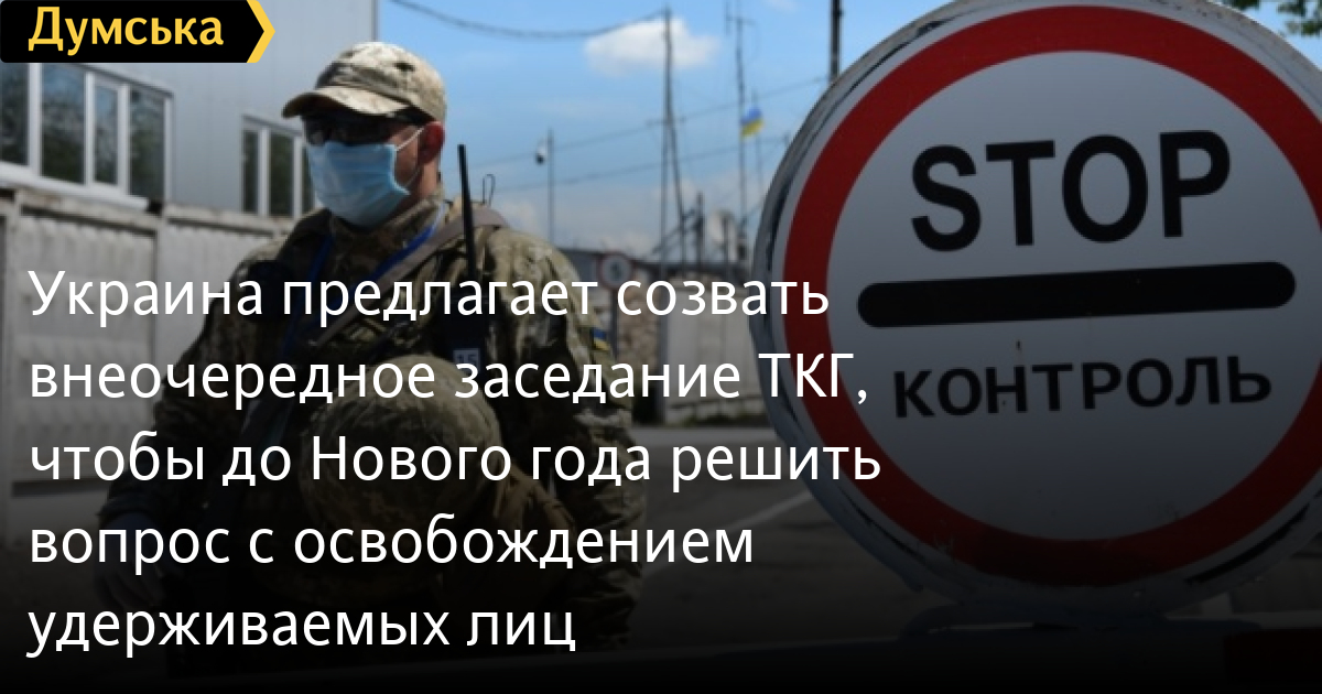 Украина предлагает созвать внеочередное заседание ТКГ, чтобы до Нового года решить вопрос с освобождением удерживаемых лицУкраинская делегация в ТКГ предлагает российским коллегам из контактной группы по урегулированию ситуации на Донбассе интенсифицировать работу, в том числе в сфере безопасности, политической и гуманитарной направлениях, для разблокировки КПВВ и обмена удерживаемыми лицами. Об этом сообщается на странице украинской делегации ТКГ в Фейсбуке.