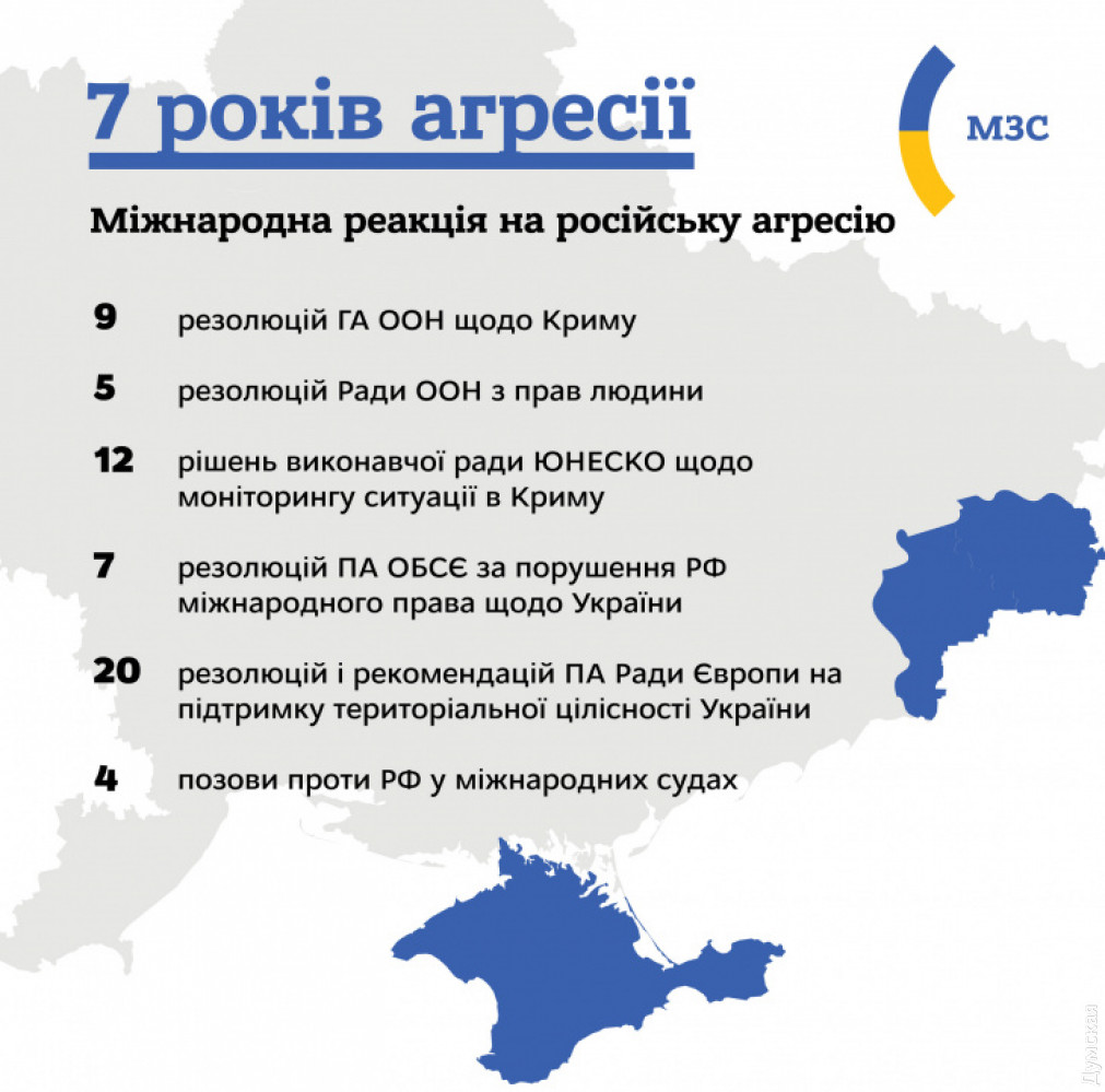Агрессия России против Украины продолжает дестабилизацию Европейского континента, — МИДМир должен усилить политическое и санкционное давление на Россию, чтобы заставить ее освободить аннексированный Крым. Об этом заявил украинский МИД в комментарии ко Дню сопротивления оккупации АР Крым и Севастополя, который отмечают 26 февраля. По мнению представителей министерства, ужесточения санкций могут побудить Россию серьезней относиться к выполнению международных судебных решений по Крыму. Кроме того, это должно помочь убедить Москву отпустить украинских пленных и политзаключенных. В МИД добавили, что агрессия РФ против Украины продолжает дестабилизацию Европейского континента. «Семь лет агрессии России против Украины вызвали военную экспансию на южном фланге Европы и создали постоянно растущую политику безопасности и гибридную угрозу для Восточной и Юго-Восточной Европы, Азово-Черноморского региона, Средиземноморья, Ближнего Востока. Российская агрессия уже принесла и продолжает нести с собой многочисленные жертвы как среди гражданских, так и военных лиц. Россия использует широкий арсенал гибридных инструментов для создания нестабильности на территории соседних стран и подрыва их государственности и суверенитета», — отмечают в МИД. Российская оккупация также заложила далеко экологические угрозы для Европы и Черноморского региона. В МИД заявили, что Украина благодарна мировым союзникам и партнерам за последовательную поддержку в попытках восстановить территориальную целостность нашей страны. «Международные санкции помогают сдерживать агрессивную политику России, но необходимы более эффективные меры, чтобы вернуть ситуацию в правовое поле и восстановить безопасность в регионе», — отмечают в министерстве. СМЕРТЬ РОСІЙСЬКИМ ОКУПАНТАМ! Помітили помилку? Виділяйте слова з помилкою та натискайте control-enter |