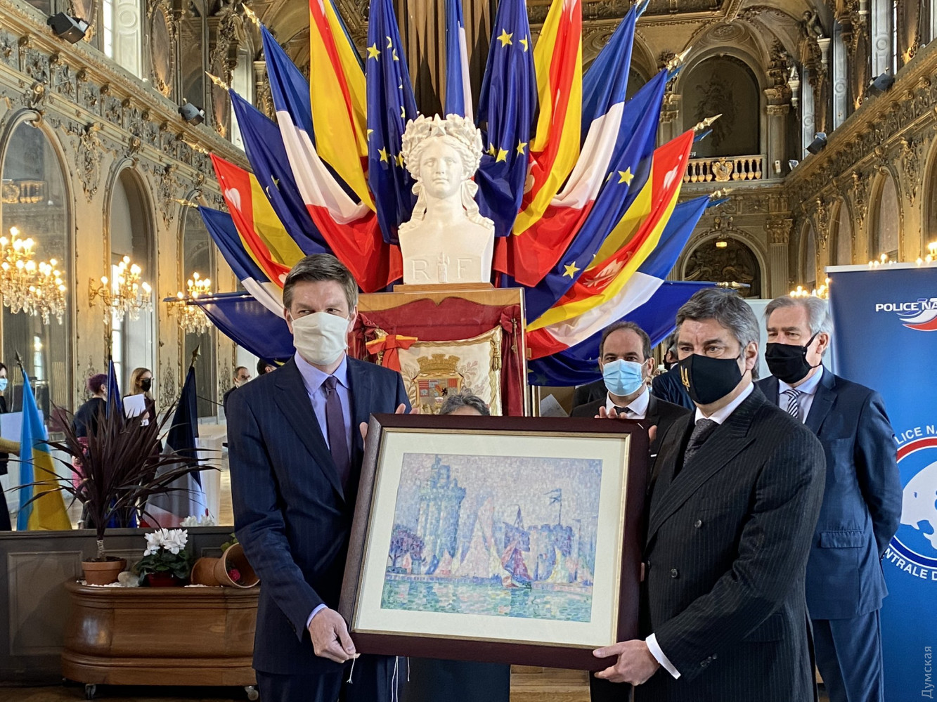 Сегодня Украина передала Франции картину, которую в 2018 году похитили из музея в Нанси. Об этом в Twitter сообщил посол Украины во Франции Вадим Омельченко. «Хороши те истории, которые хорошо заканчиваются! Имел честь принять участие в церемонии возвращения городу Нанси похищенной картины Поля Синьяка, найденной благодаря украинским правоохранителям и командной работе с французскими коллегами. Франция всегда может рассчитывать на Украину как на надежного друга и партнера», — подчеркнул Омельченко. Картину Синьяка «Порт Ла-Рошель» нашли весной 2019 года во время задержания преступной группировки в Киеве. Стоимость картины оценивается в 1,5 млн долларов. Украина сразу пообещала, что вернет картину в ближайшее время, но процесс затянулся почти на два года. Вместе с «Порт Ла-Рошель» были найдены еще несколько произведений искусства. СМЕРТЬ РОСІЙСЬКИМ ОКУПАНТАМ! Помітили помилку? Виділяйте слова з помилкою та натискайте control-enter |