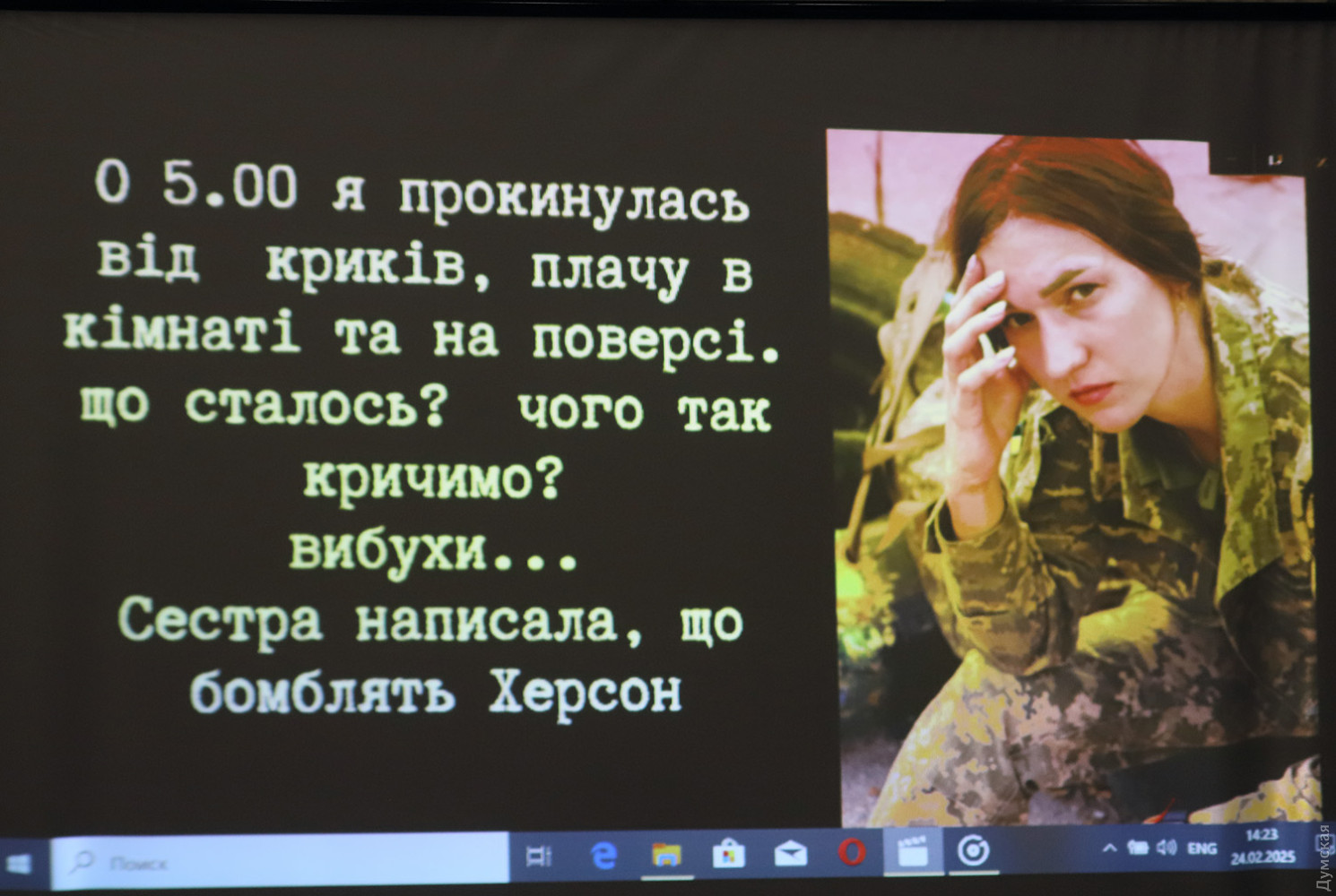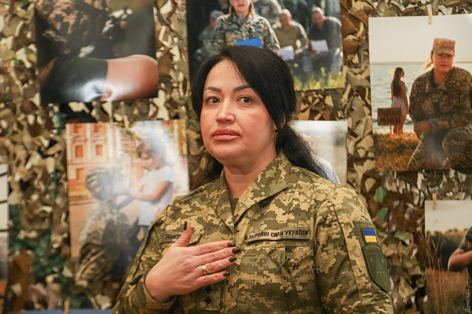 Фотопроєкт «Війна має жіноче ім’я» до 9 березня працює в історико-краєзнавчому музеї (Гаванна, 4). Авторкою його стала офіцер Збройних Сил України, старший лейтенант Ірина Ільясова, психолог, якій належать численні ініціативи з підтримки військовослужбовців та їхніх сімей. Ця яскрава, гарна жінка знає, що таке війна, не з новин. Своєю місією вважає надання голосу жінкам, чиї історії мають бути почуті. Пані Ірина служить у 208-й зенітній ракетній Херсонській бригаді. «Виставка не про війну, вона про жінку, яка її переживає, — підкреслила пані Ірина. – Про ту, хто бореться, про ту, хто вже ніколи не буде колишньою. Ця виставка – не просто світлини. Це історії. Це погляди тих, хто знає, що таке війна. Це очі, що бачили смерть, і серця, що попри все продовжують любити. Сьогодні ми дивимось в ці обличчя. І в кожному з них – незламність. Сьогодні ми говоримо про тих, хто не повернувся, і про тих, хто стоїть, щоб ми могли тут бути. Нехай ця виставка буде ще одним нагадуванням: ми не зламаємося. Ми будемо жити, боротися, пам’ятати». Голова громадської організації «Асоціація жінок України «ДІЯ» Наталя Делієва зазначила, що у 2018 році тільки 53% опитаних підтримували ідею участі жінок в армії, а у 2024-му — вже 85%. «Зараз жінки займають у війську посади бухгалтерок, юристок, працюють діловодами, медикинями, кухарками. В той же час багато жінок-снайперок, операторок БПЛА, у нашій організації «ДІЯ» є капеланка, Олена Живець, яка підіймає дух військових. Але ми не маємо забувати і про жінок-волонтерок, військових і гуманітарних, які піклуються про наше суспільство. Нам здавалося, що це війна на тиждень, ні, мабуть, на місяць, може, на рік. Війна триває вже три роки. Ми бачимо, що вона не закінчується, а знову виходить на активний виток. Маємо гуртуватися, допомагати, триматися, як один кулак, аби Україна залишилася Україною», — каже Делієва. «Жінка на війні – це не просто якась скам’яніла особа в уніформі, — зазначив в.о. директора музею Юрій Слюсар. – Вона відчуває і радість, і сум втрат, в її житті є материнство і кохання. Це вже другий цікавий проєкт, який Наталя Делієва показує в нашому музеї, ми вдячні їй за це. Обидва мають цікаві теми, важливі для суспільства. Перший, «Звільніть пташок», був про цивільних полонених, про яких звичайно не згадують, кажучи лише про військовополонених. А зараз ми сподіваємося, що проєкт, присвячений жінці на війні, вас зацікавить, що ви побачите в ньому щось своє».