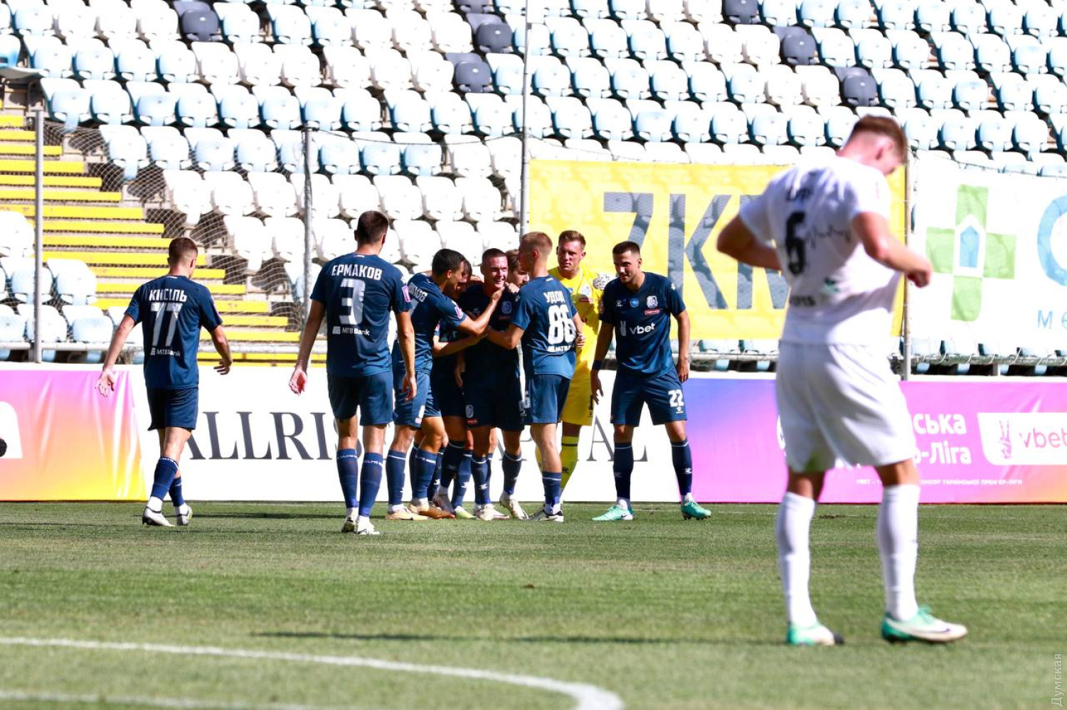 Українська Прем`єр-ліга: «Чорноморець» здобув першу перемогу в сезоні 24/25Одеський «Чорноморець» здобув першу перемогу в сезоні 24/25 Української Прем'єр-ліги. Переможний (і єдиний) гол забив Олексій Хобленко після передачі Кирила Попова, повідомляє спортивний оглядач «Думської» Віталій Хемій. В третьому турі чемпіонату України з футболу «моряки» приймали ковалівський «Колос». Суперник важкий, незручний, але вдома одесити грають успішно проти цієї команди за будь-яких обставин. Ось і цього разу «Чорноморець», продемонструвавши дисциплінований футбол в захисті, ефективний в нападі, здобув важливу перемогу. Переможний гол організувала трійка Шпорн — Попов — Хобленко. Центрфорвард одеситів продемонстрував неабияку техніку, обігравши захисника. Голкіпер з ударом Олексія не впорався. Зазначимо, що і до гольового удару в одеситів були непогані моменти. У того ж Хобленка та Дениса Янакова. В другому таймі господарі переважно діяли на контратаках. Небезпеку біля воріт «Колоса» створювали Попов, Пшеничнюк та Хобленко. Хоча головним завданням для «Чорноморця» в другому таймі було не пропустити. І завдяки відмінній грі голкіпера Артура Рудька та наших захисників з цим завданням моряки впоралися. 1:0, підопічні Олександра Бабича здобувають першу перемогу в сезоні. А вже в середу моряки зіграють у Львові матч кубка України проти «Карпат». СМЕРТЬ РОСІЙСЬКИМ ОКУПАНТАМ! Помітили помилку? Виділяйте слова з помилкою та натискайте control-enter |