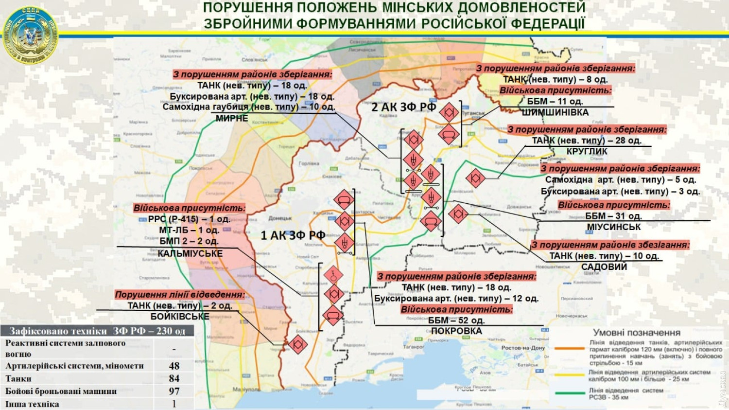 «Создают условия для дальнейшей эскалации»: украинская сторона СЦКК сообщает об очередных нарушениях Минских договоренностей со стороны российских формированийО фактах размещения вражеской военной техники на временно оккупированных территориях Луганской и Донецкой областей с нарушениями Минских вооруженных сообщает украинская сторона СЦКК. За прошедшие сутки выявлено 230 единиц военной техники вооруженных формирований РФ. В частности, в зоне действия так называемого «1 армейского корпуса» размещено 88 единиц. Два танка неустановленного типа расположены с нарушениями линии отвода, 18 танков и 12 единиц артиллерии — с нарушениями районов хранения. Также зафиксировано военное присутствие в зоне безопасности в двух районах. В зоне действия так называемого «2 армейского корпуса» зафиксировали 142 единицы вооружения и военной техники с нарушениями районов хранения (танки, артиллерия). «Работа СММ ОБСЕ на временно оккупированных территориях регулярно сопровождается препятствиями со стороны вооруженных формирований Российской Федерации», — сообщают в совместном центре. Сообщается, что зафиксированные нарушения со стороны вооруженных формирований РФ свидетельствуют о ведении ими активных мер боевой подготовки для создания условий для дальнейшей эскалации напряжения на линии столкновения. СМЕРТЬ РОСІЙСЬКИМ ОКУПАНТАМ! Помітили помилку? Виділяйте слова з помилкою та натискайте control-enter |