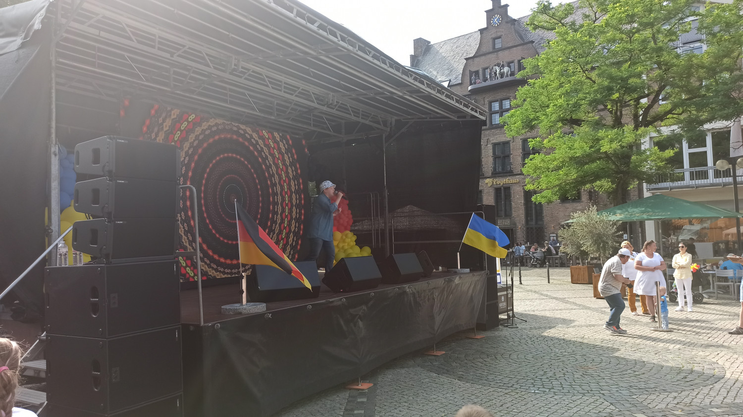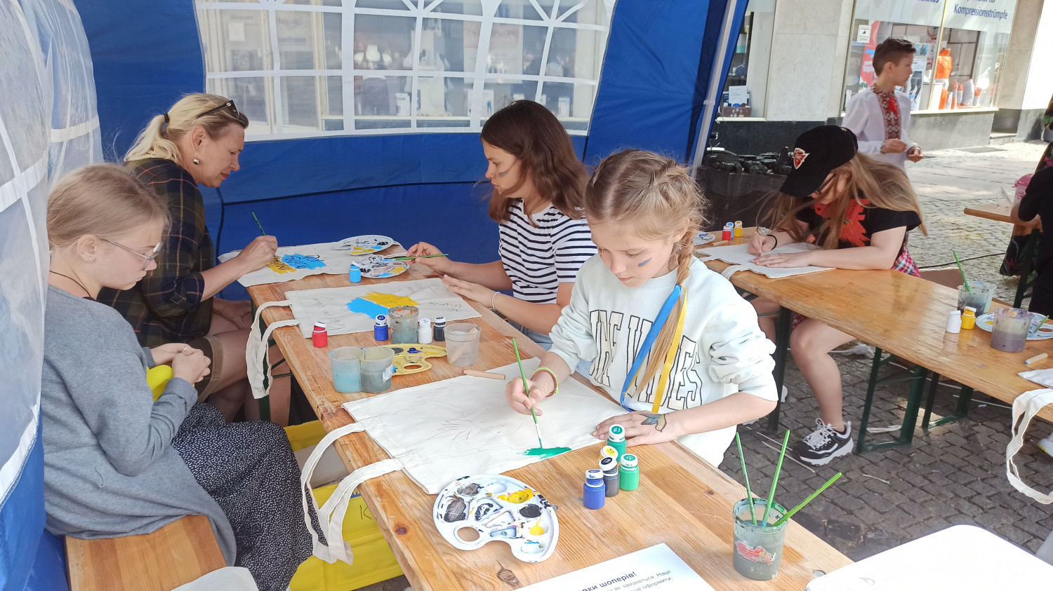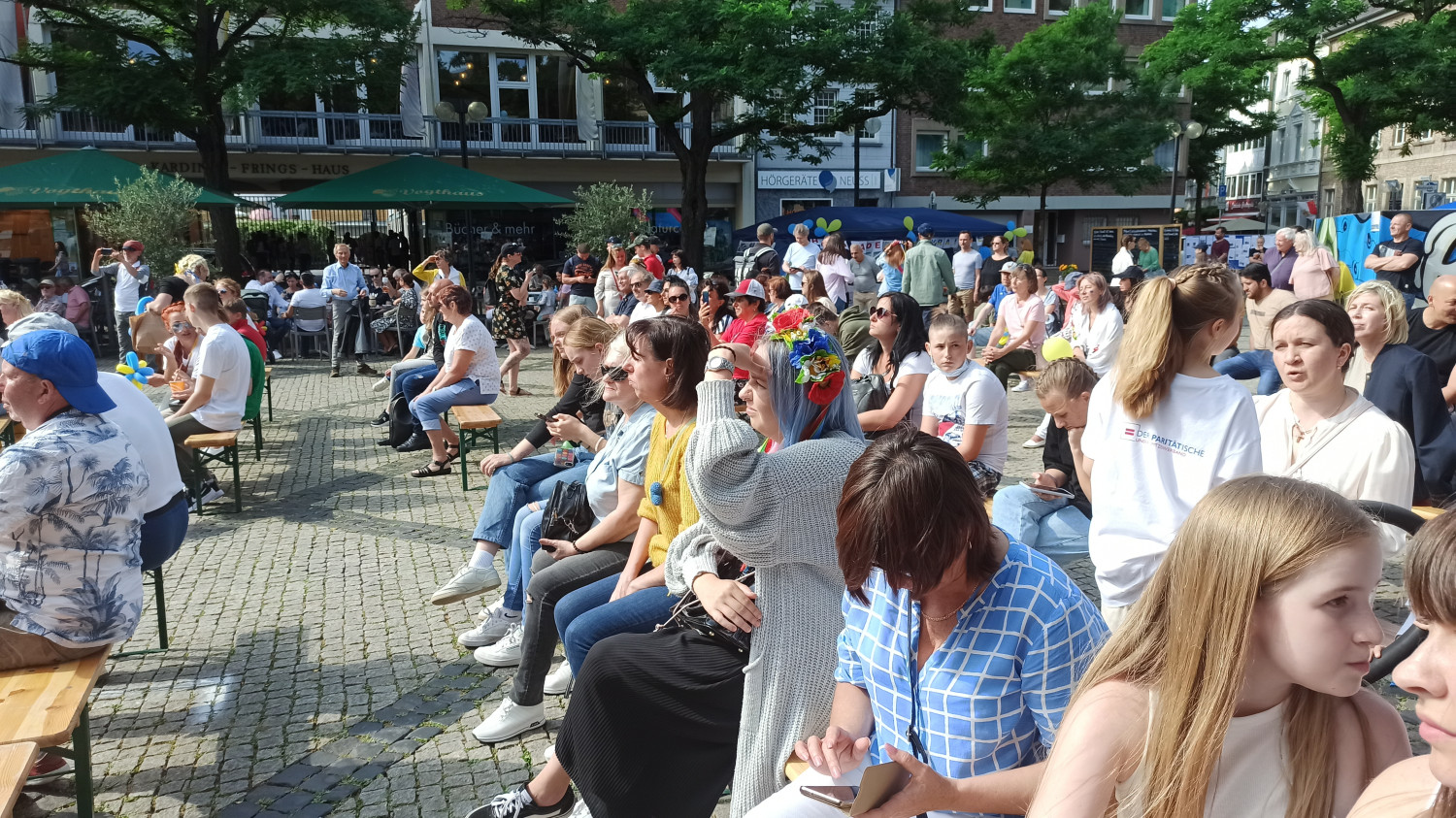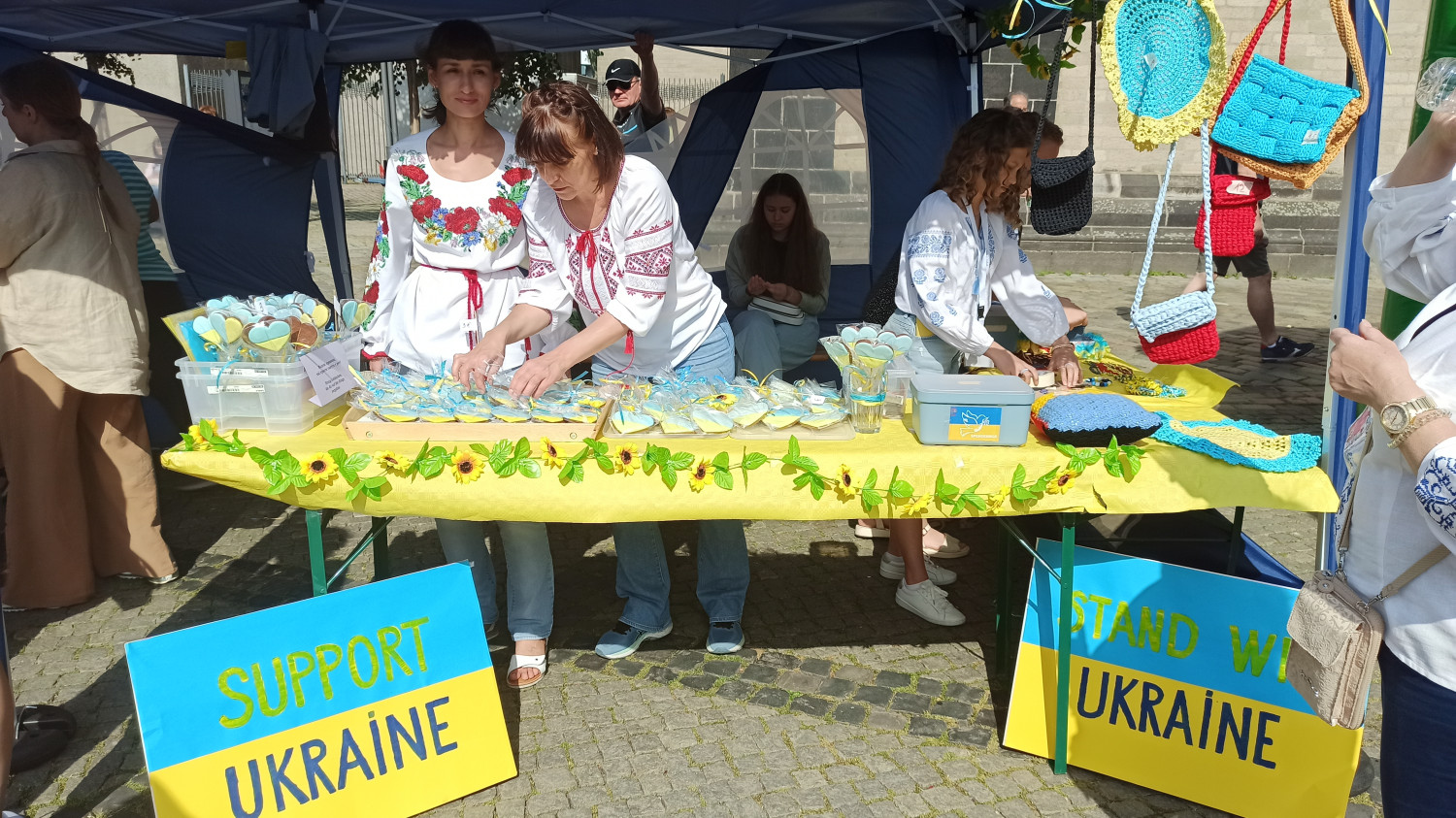 Украинские беженцы в Германии накормили немцев варениками и собрали деньги на нужды армии19 июня в городе Нойс (Германия) прошел фестиваль, посвященный поддержке Украины. Более тысячи человек, посетивших мероприятие, получили возможность не только окунуться в украинскую культуру, отведать вареников, но и помочь украинской армии. Не случайно локацией для фестиваля был выбран именно Нойс – с начала войны в Украине этот небольшой старинный городок принял уже более полутора тысяч беженцев. Едва ли не половина из них – жители юга Украины и городов, которые сейчас оккупированы россией. Фестиваль, в свою очередь, стал попыткой сказать местному населению «спасибо» за возможность вернуть своим детям детство и забыть о вое сирен. На центральной площади города были установлены желто-голубые палатки, развешены шарики, а пространство наполнилось родными сердцу мелодиями на украинском языке. Как и полагается на любом фестивале, половина локации была отдана под фуд-корт, где девушки в украинских вышиванках жарили блинчики для налистников и варили вареники с картошкой, капустой, вишней и творогом. Наплыв желающих отведать домашней украинской кухни оказался настолько велик, что запасы провианта у организаторов закончились почти в середине мероприятия, так что поварам пришлось оперативно их восполнять и готовить на месте. В другой половине фестивальной локации работала ярмарка с мастер-классами по созданию изделий в этнических техниках. Здесь все желающие могли научиться плести колоритные украинские веночки, расписывать украинской символикой сумки-шопперы и создавать браслеты из бусин. Все это было щедро сдобрено выступлениями талантливых и преимущественно юных украинцев, которых судьба забросила так далеко от дома. Ребята пели, танцевали, читали стихи и собирали восхищенные взгляды и аплодисменты гостей. Впрочем, помимо развлекательной составляющей на фесте уделили внимание и важным для беженцев вопросам. Здесь работал своего рода «инфо-поинт», где всех желающих консультировали по вопросам оформления пособий и социального жилья, образования и трудоустройства. Одной из локаций мероприятия стала фотовыставка, посвященная украинским беженцам, которые нашли приют в Германии и о том, через что им пришлось пройти, прежде чем оказаться здесь. «Я приехала из города Николаева. Мой сын и очень много моих друзей и знакомых сейчас защищают нашу Украину. Искренне благодарю их, пусть Бог их бережет! Сама я увлекаюсь Петриковской росписью и пока рисую, забываю обо всем плохом», — рассказывает одна из участниц проекта Наталья. Другая героиня фотовыставки – кондитер Наталья из Киева. В украинскую столицу она перебралась в 2014 году из родного Донецка и вот вновь вынуждена была покинуть дом. В Украине женщина занималась производством выпечки, а для фестиваля приготовила пряники, разукрашенные в цвета украинского флага. «Надеемся, что нам удалось не только познакомить жителей Нойса с многогранной и колоритной украинской культурой, но и заложить первые кирпичики общих планов на будущее. Мы показали, что быть украинцем – это круто! Что мы сильные, свободные, талантливые и победа обязательно будет за нами», — поделились организаторы фестиваля. Помітили помилку? Виділяйте слова з помилкою та натискайте control-enter |