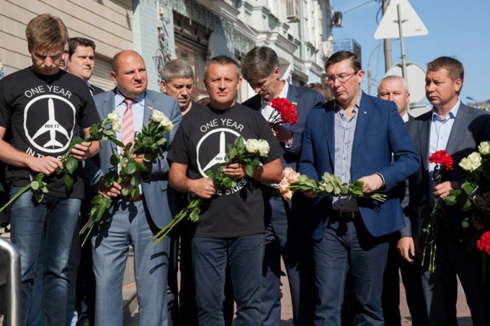 Сегодня, 17 июля, члены инициативной группы народных депутатов фракции Блок Петра Порошенко «Солидарность» возложили цветы у посольства Нидерландов в Украине в память о жертвах катастрофы Boeing-777 авиакомпании Malaysia Airlines, которая произошла год назад под Донецком. «Мы здесь сегодня для того, чтобы напомнить о жертвах российской агрессии на Донбассе, — говорит лидер фракции Юрий Луценко. — Мы солидарны с болью тех людей, которые потеряли своих близких, точно так же как Европа, Америка, Азия солидарны с Украиной».