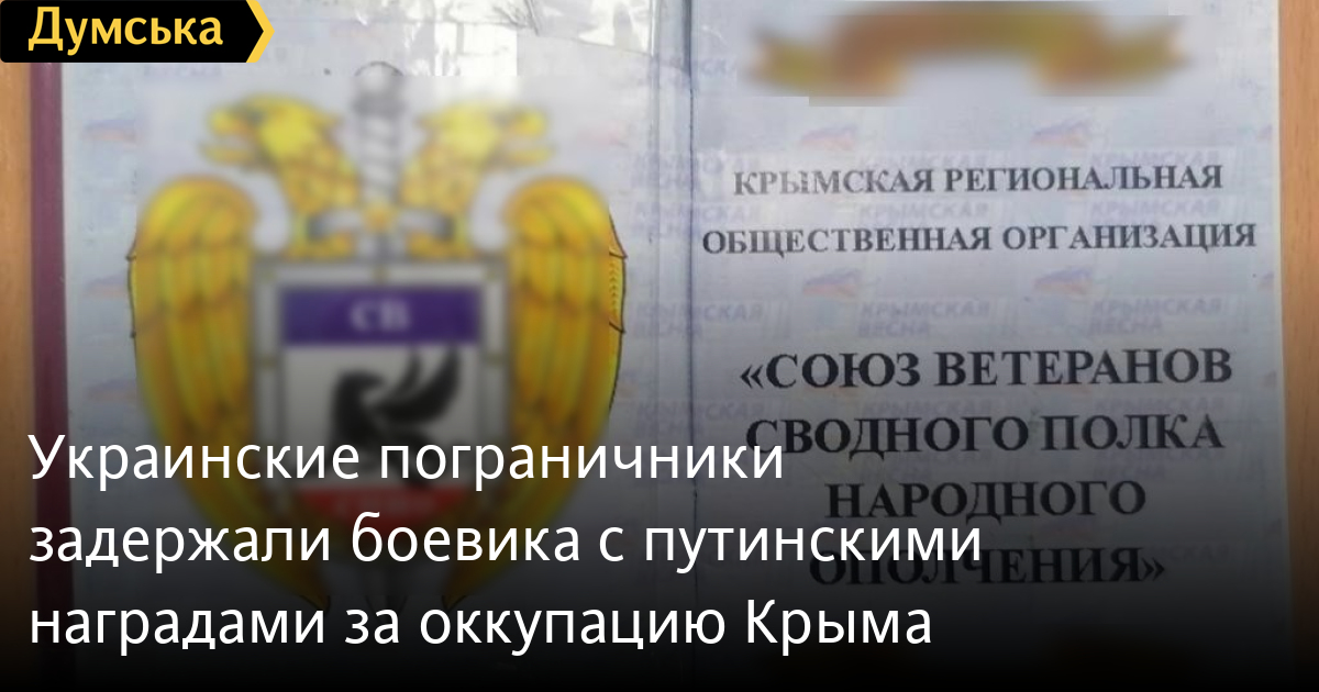 Украинские пограничники задержали боевика с путинскими наградами за оккупацию КрымаВ контрольном пункте въезда-выезда «Каланчак» при попытке попасть на материковую часть Украины был задержан так называемый «ополченец» с наградами за участие в отчуждении Крыма. Об этом сообщает пресс-центр Государственной пограничной службы. Как выяснили пограничники, мужчина 1957 года рождения имеет украинское гражданство. При этом он является добровольцем так называемого «союза ветеранов свободного полка народного ополчения Республики Крым». При себе у него было соответствующее удостоверение. Во время совместного осмотра с таможенниками среди личных вещей боевика были обнаружены награды, полученные за помощь в аннексии Крыма — медали «За заслуги перед отечеством», «За защиту Крыма», «5 лет крымской весне», «Крымская весна». Уточняется, что награды вручались украинцу в 2014-2018 годах и были заверены подписями президента России Владимира Путина и представителей оккупационной администрации Крыма. Проверка показала, что фигурант участвовал в деятельности незаконных вооруженных формирований на территории временно оккупированного Крыма. Также он принимал участие в беспорядках и нападениях с целью захвата предприятий, учреждений и государственных организаций. Боевика передали правоохранителям. Нацполиция была уведомлена о фактах признаков в действиях злоумышленника правонарушения, предусмотренного ст. 260 Уголовного кодекса («Создание не предусмотренных законодательством военизированных или вооруженных формирований»). СМЕРТЬ РОССИЙСКИМ ОККУПАНТАМ! Заметили ошибку? Выделяйте слова с ошибкой и нажимайте control-enter |