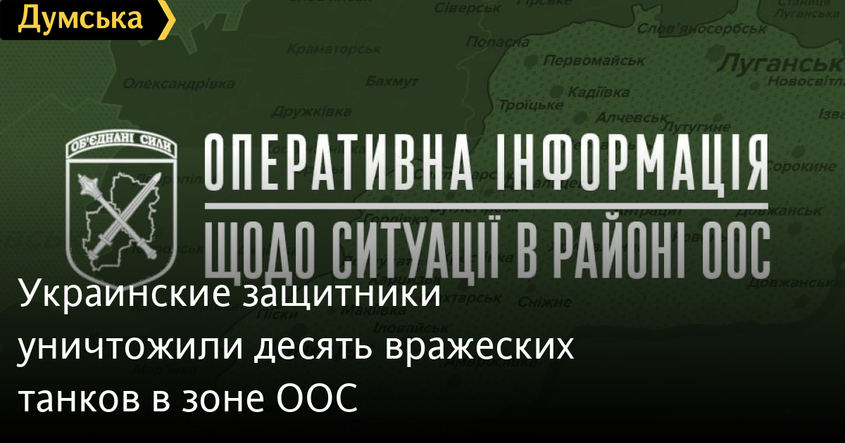 Защитники Украины за сутки отбили 12 атак врага в зоне операции Объединенных сил (ООС) и уничтожили десять танков и 15 единиц бронетехники. Об этом сообщает пресс-центр ООС. В частности, украинские защитники уничтожили 10 танков, 5 артиллерийских систем, 15 единиц бронированной и 5 единиц автомобильной техники противника. Подразделения противовоздушной обороны в небе украинского Донбасса сбили 2 вертолета Ми-24, один беспилотный летательный аппарат типа «Орлан-10», — говорится в сообщении. СМЕРТЬ РОСІЙСЬКИМ ОКУПАНТАМ! Помітили помилку? Виділяйте слова з помилкою та натискайте control-enter |
