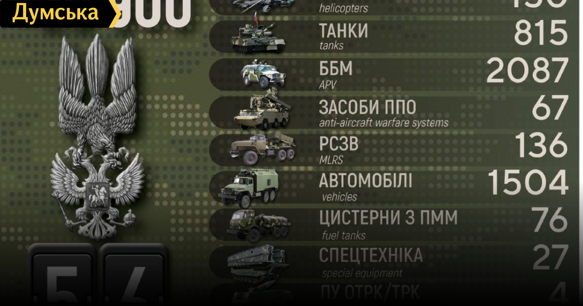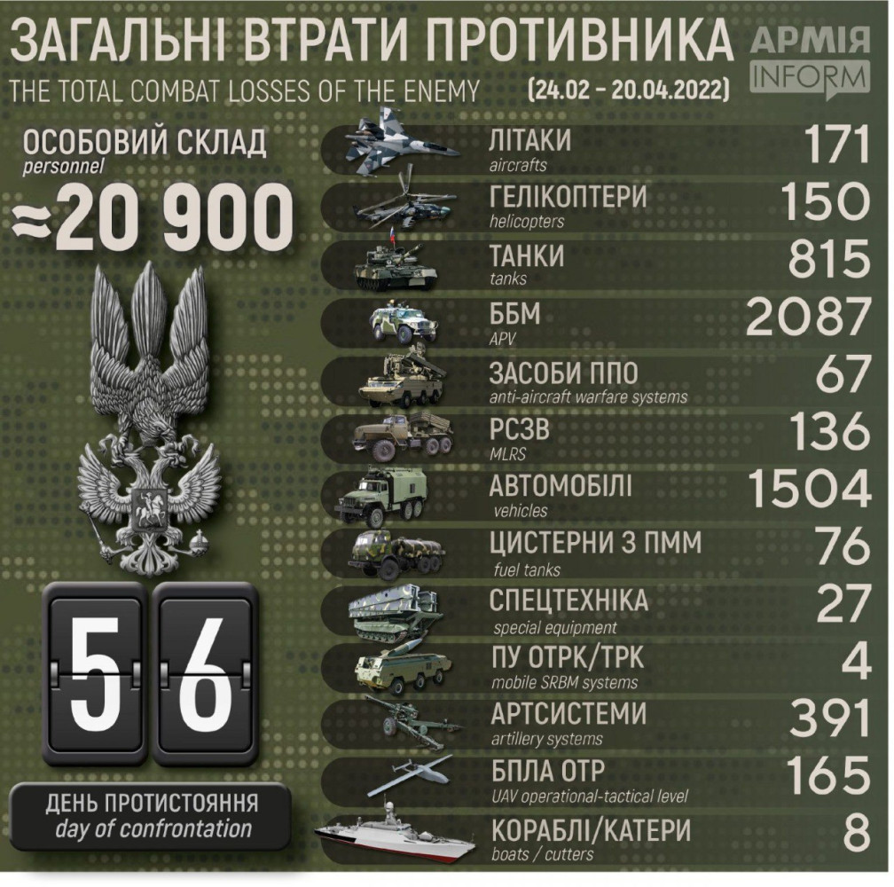 Украинские защитники за сутки уничтожили 13 танков, два самолета и 24 боевые бронемашины российских нацистов13 танков, два самолета и 24 боевые бронемашины потеряли в Украине российские нацисты за минувшие сутки. Кроме того, как сообщили в Генштабе Вооруженных сил, украинские военные уничтожили девять автомобилей и пять артсистем, четыре реактивные системы залпового огня, семь беспилотников оперативно-тактического уровня и около сотни оккупантов. Всего с начала полномасштабного вторжения потери противника составили: примерно 20,9 тысяч оккупантов, 815 танка, 2 087 боевых бронемашин, 391 артсистема, 136 реактивные системы залпового огня, 67 средств ПВО, 171 самолет, 150 вертолетов, 1504 автомобиля, восемь кораблей и катеров, 76 цистерн с топливом, 165 беспилотников оперативно-тактического уровня, 27 единиц спецтехники и четыре пусковые установки оперативно-тактических ракетных комплексов. СМЕРТЬ РОСІЙСЬКИМ ОКУПАНТАМ! Помітили помилку? Виділяйте слова з помилкою та натискайте control-enter |