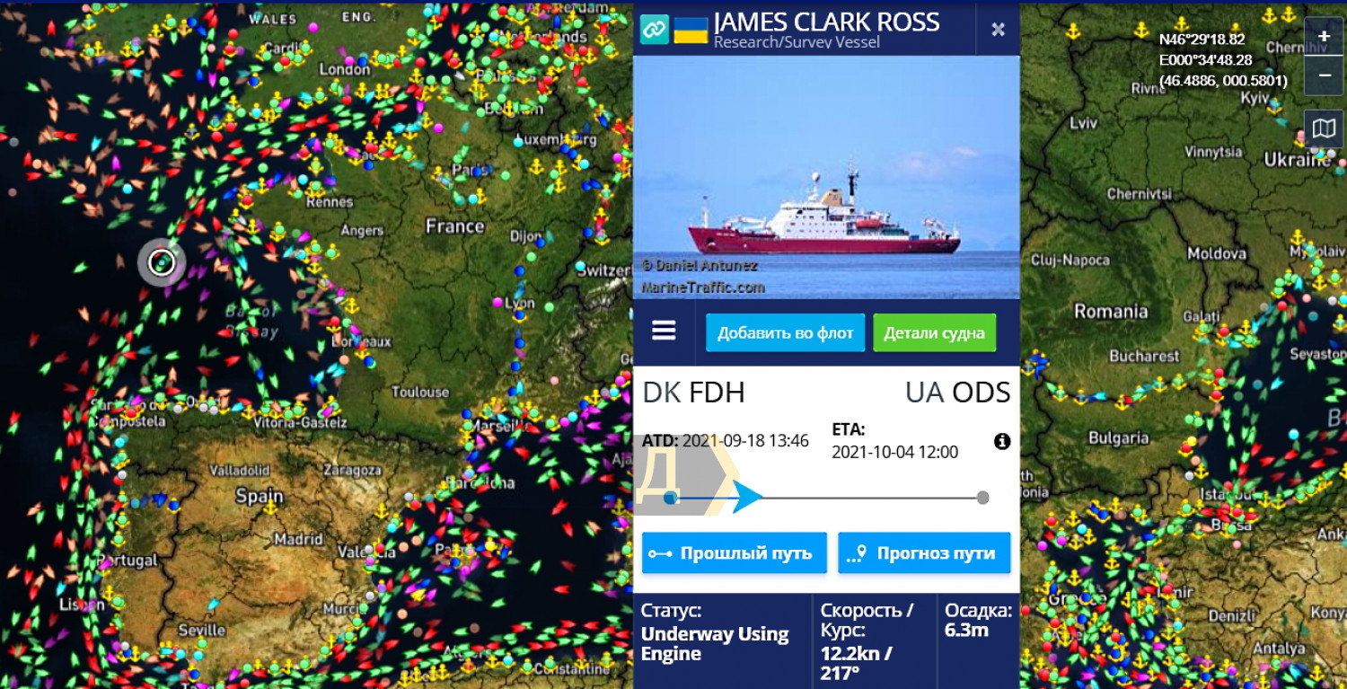 Стала известна дата прибытия в одесский порт украинского ледокола James Clark Ross, приобретенного Украиной для научной работы в Антарктике. По данным «Думской», судно должно зайти в нашу гавань к полудню 4 октября. В минувшую субботу, 18 сентября, James Clark Ross отправился из датского порта Фредериксхавн в Одессу, за четыре дня прошел вдоль северного побережья Европы, через пролив Ла-Манш. Сейчас ледокол находится недалеко от побережья Испании. Напомним, судно было продано Украине всего за 5 миллионов долларов, хотя реальная цена намного выше. 30 августа на нем подняли государственный флаг Украины. Судно построено компанией Swan Hunter Shipbuilders в Уолсенде и спущено на воду в 1990 году. В торжественных мероприятиях принимала участие королева Великобритании и Северной Ирландии Елизавета II. Ледокол назван в честь Джеймса Кларка Росса — британского военного моряка и исследователя, который в середине XIX века на кораблях «Террор» и «Эребус» предпринял самую масштабную на то время экспедицию в Антарктику, а позднее принимал участие в поисках исчезнувшей экспедиции Франклина в Арктике. СМЕРТЬ РОСІЙСЬКИМ ОКУПАНТАМ! Помітили помилку? Виділяйте слова з помилкою та натискайте control-enter |