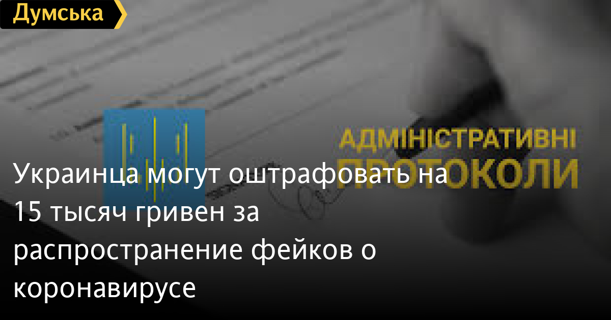 Украинца могут оштрафовать на 15 тысяч гривен за распространение фейков о коронавирусеНа жителя Глыбоцкого района Черновицкой области составили админпротокол за распространение в интернете неправдивой информации о коронавирусе. Об этом сообщила пресс-служба полиции Черновицкой области. Правоохранители обратили внимание на 38-летнего мужчину, который писал на своей странице в соцсети фейки о количестве случаев инфицирования коронавирусом в Украине, в том числе с летальным исходом. В полиции считают, что подобные действия могли ввести граждан в заблуждение и вызвать панику среди населения. Поэтому на нарушителя составлен админпротокол по признакам ст. 173-1 (Распространение ложных слухов) Кодекса Украины об административных правонарушениях. Теперь мужчине грозит штраф в размере от 10 до 15 необлагаемых минимумов доходов граждан, либо исправительные работы в течение месяца с отчислением 20% заработка. СМЕРТЬ РОССИЙСКИМ ОККУПАНТАМ! Заметили ошибку? Выделяйте слова с ошибкой и нажимайте control-enter |