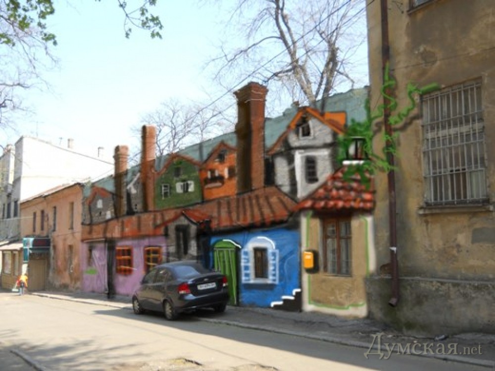 Ланжероновский спуск мастера стрит-арта предлагают украсить композициями «Утесов и джаз «Веселые ребята» и «Старый граммофон» (авторы — «Cтудия Peach»), фасад дома №44 по Большой Арнаутской — портретом Остапа Бендера (автор Игорь «Матроскин»), стену жилого дома у «Палладиума» — рисунком Афины Паллады («Cтудия Peach»), сам «Палладиум» — античным пейзажем (Игорь «Матроскин»).