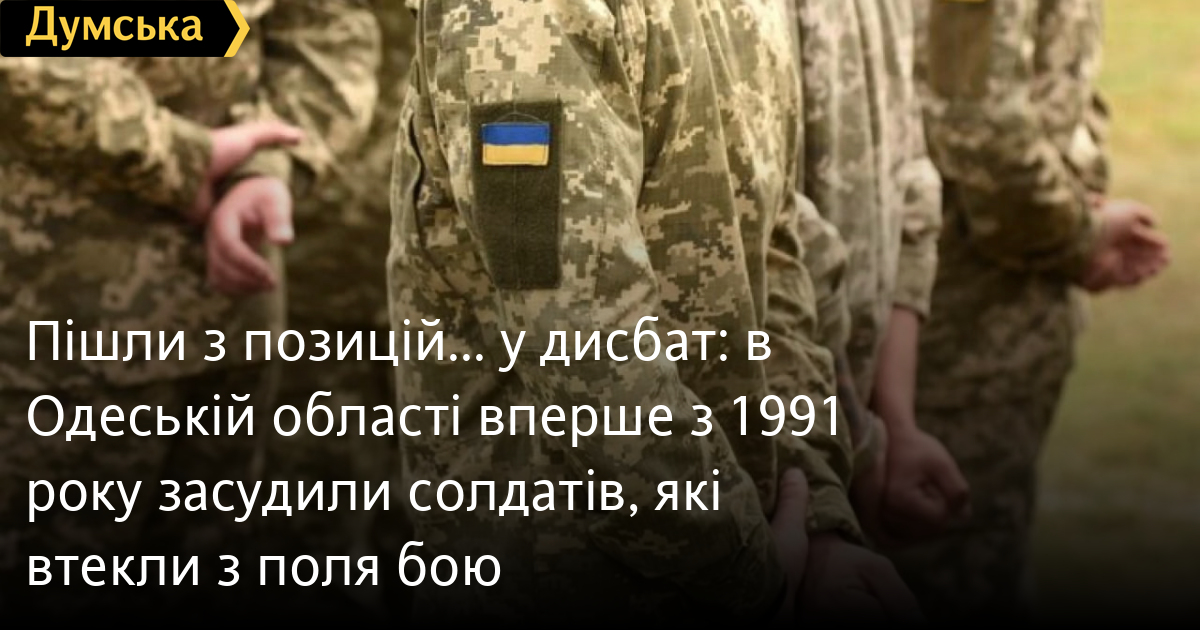 Пішли з позицій у дисбат: в Одеській області вперше з 1991 року засудили солдатів, які втекли з поля бою👍 286 😢 83 👎 47 😱 25 🤬 15 ❤ 13 🙏 3 🔥 1 & Двох солдатів, які втекли з поля бою, відправив у дисциплінарний батальйон Біляївський районний суд Одеської області. Їх визнали винними у самовільному залишенні поля бою, передає кореспондент «Думской». Цікаво, що вироки за цією статтею (429 КК України 2001 року) винесли в нашому регіоні вперше. За аналогічною статтею кодексу 1960 року теж нікого за весь час незалежності не засудили. На лаві підсудних були уродженці Дніпропетровської області, мобілізовані військовослужбовці стрілецького батальйону N-ської бригади. Інкримінований злочин вони скоїли ввечері 16 жовтня 2022 року під час боїв за звільнення правобережної частини Херсонської області. Коли почався обстріл позицій батальйону, бійці залишили опорний пункт і самовільно пішли в тил. Одного з них, санітара-стрільця, засудили в лютому, другого, стрільця-помічника гранатометника — днями. Свою провину вони визнали в повному обсязі і в найближчі два роки і два місяці служитимуть у дисбаті. СМЕРТЬ РОСІЙСЬКИМ ОКУПАНТАМ! Помітили помилку? Виділяйте слова з помилкою та натискайте control-enter |