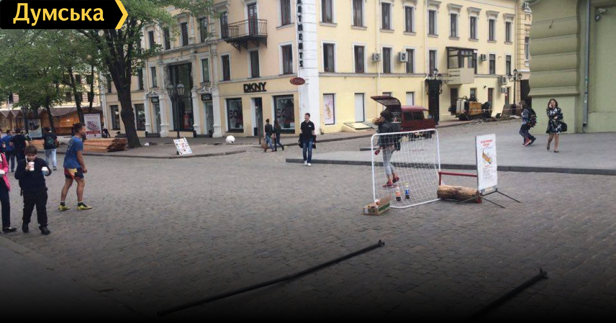 Недавно прямо посреди главной улицы Одессы появились сомнительные аттракционы, типа «забей мяч в ворота» и «кто сколько провисит на крутящемся турнике».