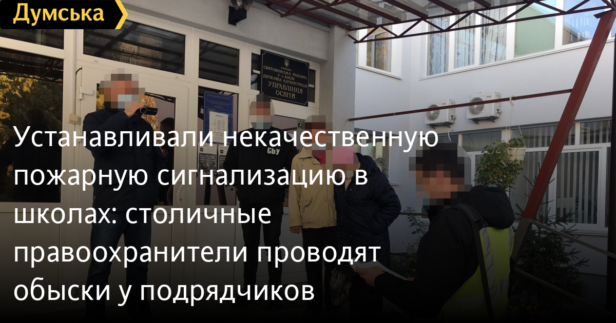 Устанавливали некачественную пожарную сигнализацию в школах: столичные правоохранители проводят обыски у подрядчиковСтоличные правоохранители подозревают подрядчиков в установке некачественной пожарной сигнализации в школах Святошинского района Киева. Как сообщает пресс-служба Киевской городской прокуратуры, обыски проводят у заказчика работ — в управлении Святошинской РГА, и в офисах подрядчика. По данным следствия, компании в течение 2018-2020 года устанавливали противопожарные сигнализации голосового оповещения, раннего выявления, пожаротушения и дымоуделения на сумму 6,9 млн гривен. Сообщается, что работы выполнены не в полном объеме, по завышенным ценам, а привлеченные субподрядные организации оказались фиктивными. Уголовное производство открыто по ч. 2 ст. 191 УК Украины (присвоение, растрата или завладение чужим имуществом путем злоупотребления служебным положением). СМЕРТЬ РОССИЙСКИМ ОККУПАНТАМ! Заметили ошибку? Выделяйте слова с ошибкой и нажимайте control-enter |