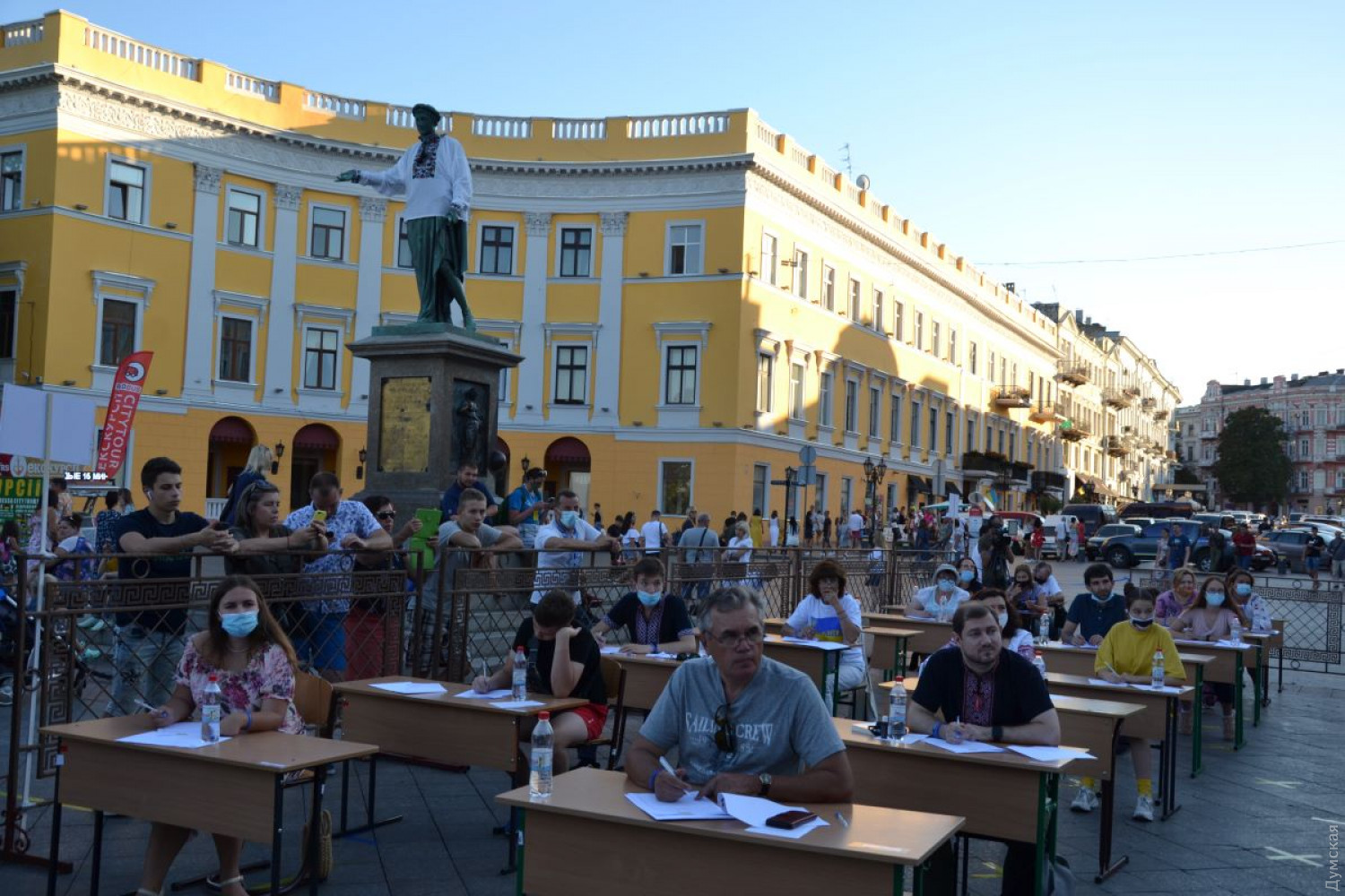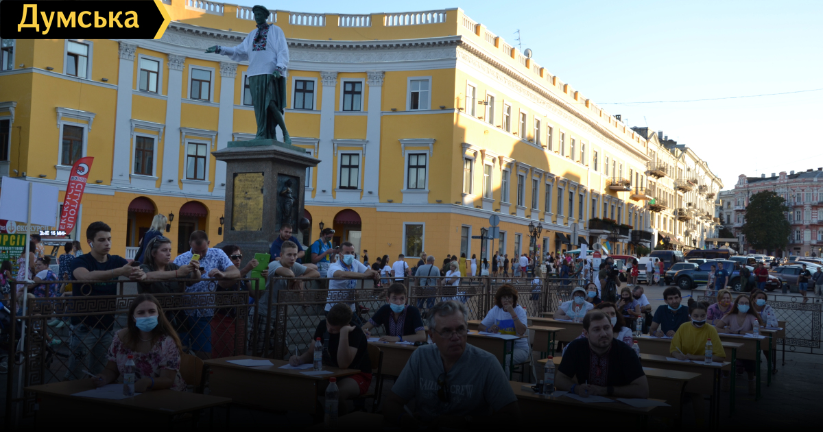 Усы Лукашенко, карантинный режим и блюз на бандуре под присмотром Дюка: в Одессе массово писали диктантПятый год подряд на Приморском бульваре у памятника Дюку де Ришелье в рамках Вышиванкового фестиваля проходит массовый диктант по украинскому языку. В нынешнем году фестиваль проводится в условиях карантина, поэтому были предусмотрены ограничения — масочный режим и расстояния между партами. Правда, многие из 96 участников писать предпочли, спустив маски на подбородок. Были тут и дети, и пенсионеры, и студенты и даже полицейские. Читать диктант под названием «Утро на море» доверили одесскому поэту Андрею Хаецкому. Перед началом диктанта нашлось время на минутку политинформации. Ведущий мероприятия выразил поддержку народу Беларуси и сорвал аплодисменты. «Выражаю уверенность, что как минимум усы диктатора Лукашенко окажутся за решеткой», — пошутил он. Сам диктант прошел в штатном режиме под спокойную диктовку Андрея Хаецкого. Участники внимательно слушали и осторожно писали, перепроверяя каждую буковку, а за всем этим наблюдал суровый Дюк, облаченный в вышиванку. После завершения диктанта его участники, а также все желающие могли насладиться концертом участницы отбора на Евровидение и шоу X-фактор Марины Круть и ее проекта KRUTЬ. Молодая артистка представила одесситам собственные песни под аккомпанемент бандуры и ударных. Следует отметить, что в своем творчестве она сумела переплавить народные мотивы и блюзовые начала в удивительно свежий продукт. Несмотря на наличие на сцене всего двух музыкантов, группа звучала плотно и совершенно полноценно. СМЕРТЬ РОСІЙСЬКИМ ОКУПАНТАМ! Помітили помилку? Виділяйте слова з помилкою та натискайте control-enter |