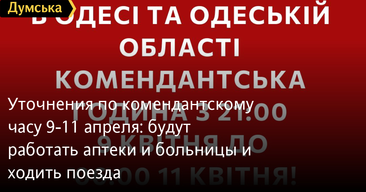 Уточнения по комендантскому часу 9-11 апреля: будут работать аптеки и больницы и ходить поездаОдесская ОВА опубликовала уточнения по работе аптек, больниц и общественного транспорта во время продолжительного комендантского часа 9-11 апреля: 1. В ночное время (с 21:00 9.04 до 6:00 10.04 и с 21:00 10.04 до 6:00 11.04) все меры комендантского часа — без изменений. В дневное время (с 6:00 до 21:00 10.04) 2. Предприятия непрерывного цикла, больницы и аптеки — работают в штатном режиме. 3. График движения поездов и автобусов междугороднего сообщения не изменяется, посадка и высадка пассажиров, а также допуск на вокзалы и выход из них разрешается при наличии ранее купленных проездных документов и документов, удостоверяющих личности. 4. Движение общественного транспорта — значительным образом ограничивается. 5. Перемещение пешком, общественным и личным транспортом — ограничивается и разрешается только при наличии документов, которые удостоверяют необходимость такого перемещения (билеты на поезд или автобус, направление на лечение, удостоверение на командировку, удостоверение сотрудника предприятия непрерывного циклы и т.д.) 6. Запрещается работа и посещение рынков, учреждений общественного питания, кафе, ресторанов, торгово-развлекательных учреждений, парков отдыха, спортивных учреждений, магазинов, торговых точек и АЗС. 7. Разрешается проведение весенних полевых работ, выгул и выпас домашних животных и скота (при наличии не более чем трех сопровождающих людей), а также разрешено перемещение для обеспечения продуктами и лечением животных. 8. Проведение запланированных захоронений и связанных с ними ритуальных мероприятий разрешается при наличии минимально необходимого количества присутствующих (близкие родственники и друзья). Категорически запрещено нахождение за границами личного помещения (на улице) в количестве более трех человек без документов, удостоверяющих личность. СМЕРТЬ РОСІЙСЬКИМ ОКУПАНТАМ! Помітили помилку? Виділяйте слова з помилкою та натискайте control-enter |