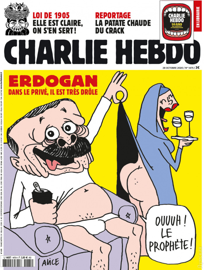 Увидел пророка под платьем мусульманки: французский журнал Charlie Hebdo вышел с карикатурой на ЭрдоганаИзвестный своими жесткими карикатурами французский сатирический журнал Charlie Hebdo выпустил сегодняшний номер с карикатурой на турецкого президента Реджепа Тайипа Эрдогана На рисунке сидящий в трусах усатый мужчина рукой задирает подол женщине в традиционном мусульманском платье и восклицает при этом: «Ооо! Пророк!». Заголовок карикатуры гласит: «Эрдоган: в частной жизни он очень забавный!». В администрации Эрдогана отреагировали на карикатуру. Пресс-секретарь Эрдогана Фахреттин Алтун обвинил издателей и заодно французские власти в «отвратительной попытке посеять культурный расизм и ненависть». Отметим, обострение отношений Парижа и Анкары произошло после оскорбительных высказываний Эрдогана, выразившего сомнение в психическом здоровье французского лидера. В связи с этим Париж отозвал своего посла из Турции и потребовал от Евросоюза принять санкции в отношении Анкары. До этого французский лидер Эмманюэль Макрон заявил, что в стране не собираются отказываться от карикатур и рисунков, даже если они кого-то задевают. Напомним, 16 октября в пригороде Парижа Конфлан-Сент-Онорин 18-летний чеченец, уроженец Москвы, прямо в метро совершил убийство школьного учителя истории, перерезав ему горло со словами «Аллаху акбар!». Накануне 47-летний учитель на уроке, посвященном свободе слова, показывал ученикам карикатуры на пророка Мухаммеда, опубликованные в Charlie Hebdo 2015 году, из-за которых террористы напали на редакцию и расстреляли сотрудников. СМЕРТЬ РОСІЙСЬКИМ ОКУПАНТАМ! Помітили помилку? Виділяйте слова з помилкою та натискайте control-enter |
