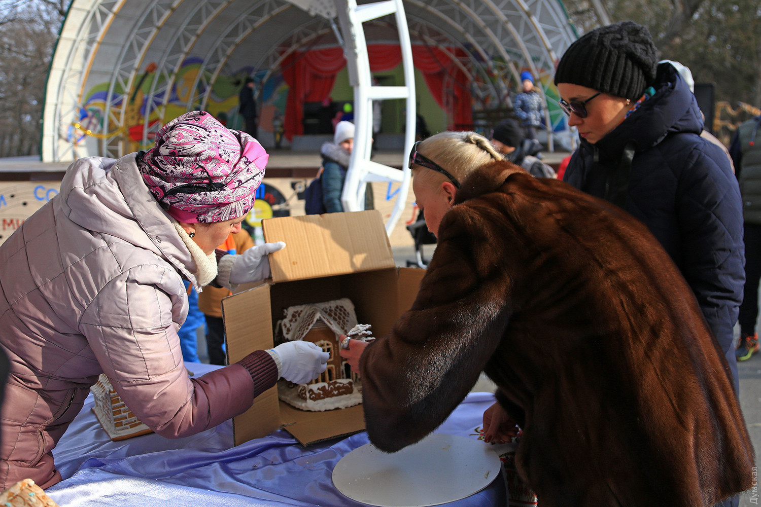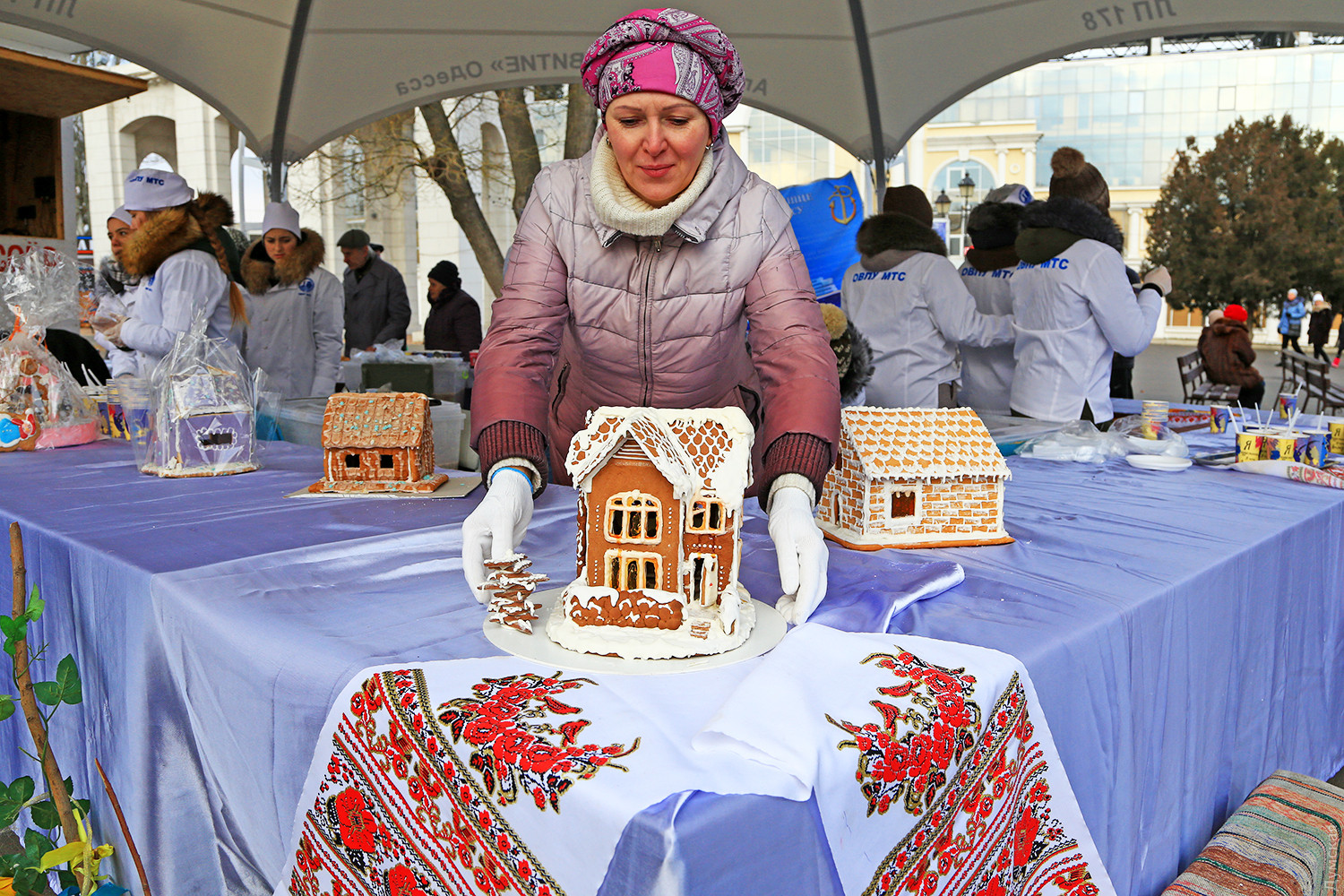 Рождественский фестиваль провели сегодня в парке Шевченко. Возле эстрады «Ракушка» студенты Одесского высшего профучилища морского туристического сервиса раздавали горожанам сладкие подарки. Девушки бойко и с шутками разливали в стаканчики традиционный для Сочельника горячий узвар и кутью, приготовленную своими руками. Преподаватели рассказали, что специально для фестиваля было сварено более двух с половиной тысяч порций этих рождественских угощений. А еще гостей удивили пряничные домики, которые тут же прозвали сладкой недвижимостью. Если узвар и кутью раздавали бесплатно, то за «недвижимость» пришлось платить. Тем не менее, в первые же минуты праздника почти все домики были распроданы. Одна из покупательниц согласилась отдать за домик 250 гривен. «Я купила подарок детям под Рождество. Считаю, что это недорого — мы же покупаем хвойных красавиц по 200-400 гривен, а тут кулинары долго трудились над этим творением, спасибо им за вкусную работу», — отметила покупатель Ольга. Чуть позже молодые хозяйки представили еще одну свою работу — традиционные 12 блюд. Здесь была селедочка, винегрет, жаренная рыбка, отварная фасоль с лучком и, конечно, украинские вареники. Завершился фестиваль музыкальным поздравлением. Исполнительницы пели голосом Софии Ротару, а одна из певиц взорвала толпу джазовой импровизацией. Соорганизатор фестиваля Татьяна Мальчикова поделилась с «Думской» планами будущих праздников: «Есть идея весело и вкусно провести Масленицу. Недавно на фестивале в Вилково мы сварили рекордное количество ухи, около 4 тонн. Хотим на Масленицу в той же посуде приготовить 5 тонн глинтвейна и выпечь рекордное количество блинов». Фото Сергея Смоленцева СМЕРТЬ РОСІЙСЬКИМ ОКУПАНТАМ! Помітили помилку? Виділяйте слова з помилкою та натискайте control-enter |