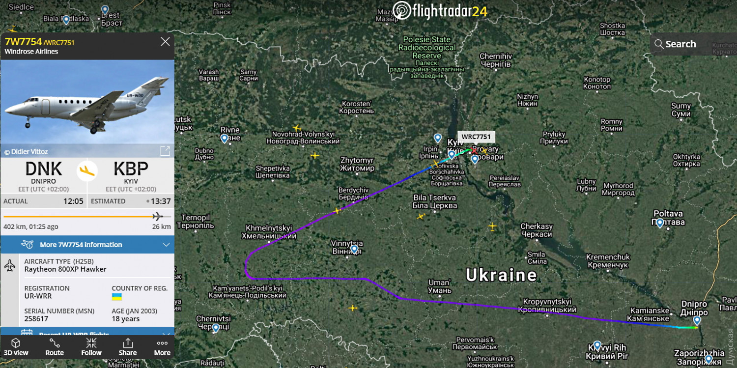 ОБНОВЛЕНО В 17:15. Выяснились подробности задержания самолета, на котором пытался улететь Яценко. Частный самолет Hawker Ratheon 800XP с регистрационным номером UR-WRR, принадлежащий украинской авиакомпании «Роза Ветров» (Windrose), вылетел в 12:05 из Днепра, но через час полета, примерно над Хмельницком, развернулся в сторону Киева. В 13:37 он приземлился в аэропорту Борисполь.
