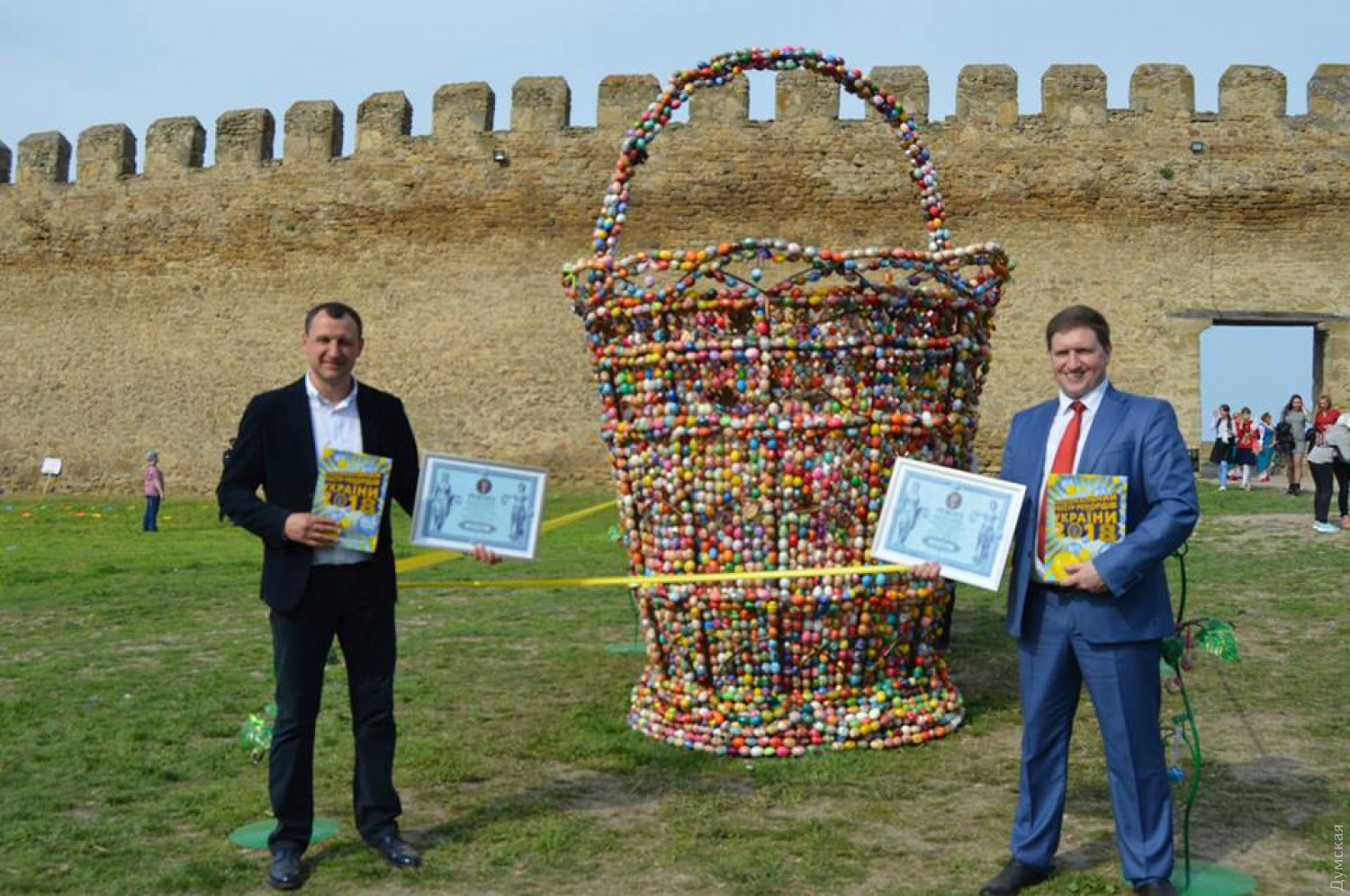 В Аккерманской крепости установили самую большую в Украине пасхальную корзину из 6 тысяч крашенок