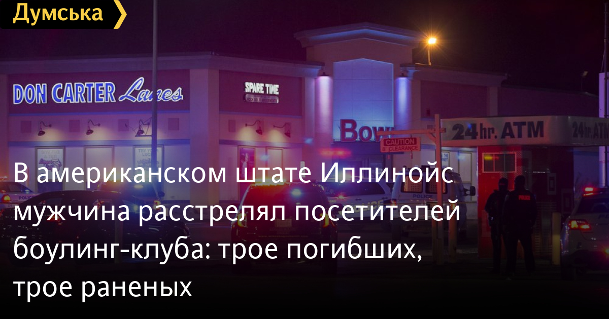 В американском штате Иллинойс мужчина расстрелял посетителей боулинг-клуба: трое погибших, трое раненыхВ боулинге города Рокфорд американского штата Иллинойс произошла стрельба. В результате инцидента три человека погибли, еще трое получили ранения и были госпитализированы, сообщает Associated Press. Двое из погибших были подростками. Стрельба случилась около 19 часов в субботу, 26 декабря. Когда полиция приехала на место инцидента, злоумышленник еще находился в здании. Он стрелял как в середине заведения, так и на улице. В полиции считают, что нападение было внезапное. Стрелка задержали. СМЕРТЬ РОССИЙСКИМ ОККУПАНТАМ! Заметили ошибку? Выделяйте слова с ошибкой и нажимайте control-enter |