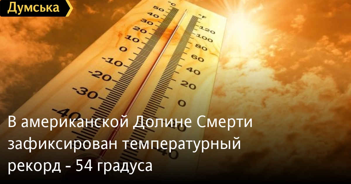 Сильная жара на американском Западе привела к очередному температурному рекорду – в Долине Смерти зафиксировали 130 градусов по Фаренгейту (54 по Цельсию). Об этом сообщает Reuters. Отмечается, что Национальная метеорологическая служба зафиксировала 11 июля температуру 130 градусов, что в случае подтверждения станет одной из самых высоких зафиксированных на Земле. Один из рейнджеров днем 12 июля измерил температуру на тротуаре возле центра посетителей, и она составляла 178 градусов по Фаренгейту (81 по Цельсию). Большая часть туристов выходили из своих машин с кондиционерами только на несколько минут, чтобы сфотографироваться с термометром. Национальная служба погоды выпустила предупреждение о чрезвычайной жаре в большей части региона и напомнила жителям, что высокие температуры опасны для их здоровья. Особенно это касается пожилых людей и маленьких детей. Жара, которая распространилась на большую часть Тихоокеанского северо-запада, вызвала давление на электросети и привела к большим пожарам, включая пожар в Южном Орегоне, который угрожал 1200 домам и другим сооружениям. В связи с этим жители сотен домов были эвакуированы, а еще 6 июля губернатор Кейт Браун объявила чрезвычайное положение. СМЕРТЬ РОССИЙСКИМ ОККУПАНТАМ! Заметили ошибку? Выделяйте слова с ошибкой и нажимайте control-enter Новости по этой теме: 7 ноября 2025: До +16, но с дождями: в Одессе прогнозируют ухудшение погоды 29 октября 2025: Котельные готовы: Одесса включит отопление через две недели, а начало ноября будет аномально теплым 8 октября 2025: Одесские школы и садики возвращаются к очному режиму работы 6 октября 2025: Из-за ухудшения погоды школы и садики Одесской области переводят на дистанционное обучение 1 октября 2025: Катастрофа, которую можно было предотвратить (блог) |