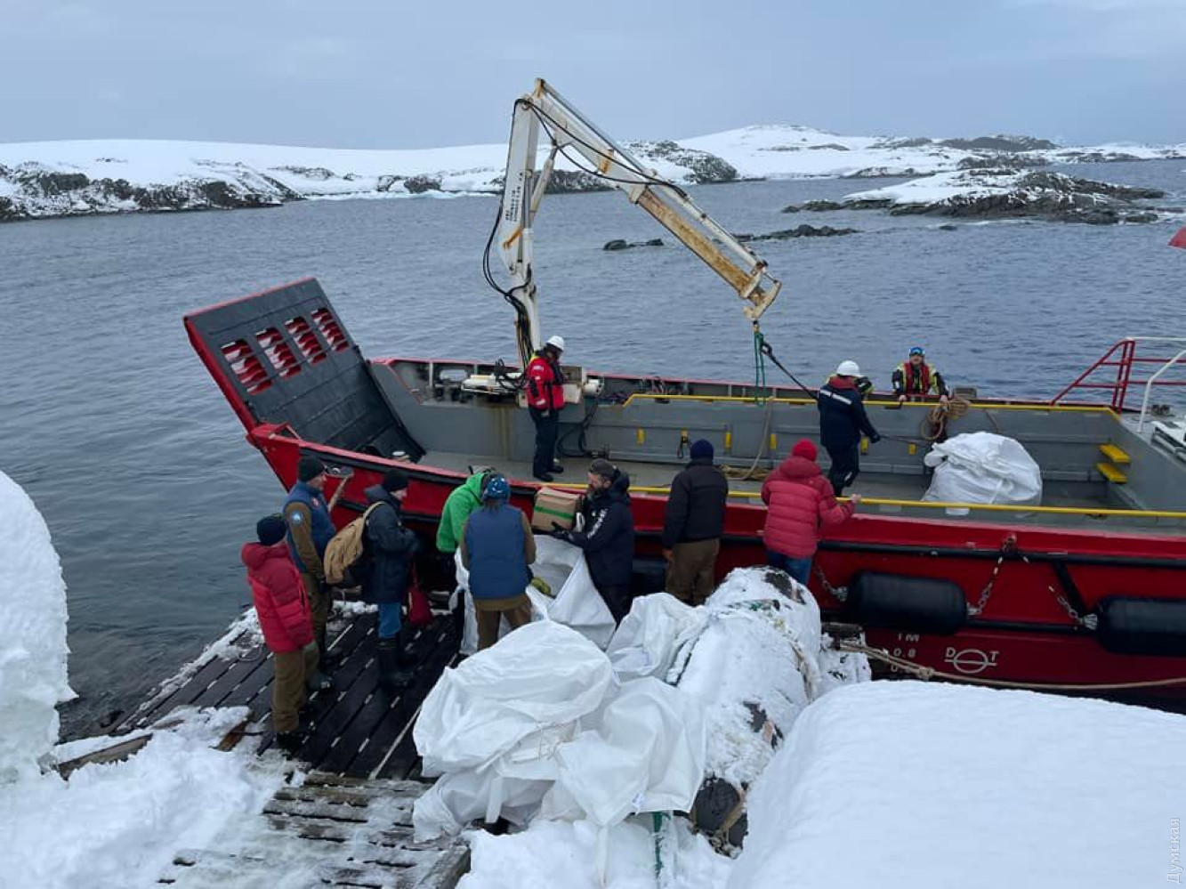 Члены 27-ой антарктической экспедиции высадились на украинской станции «Академик Вернадский». Как сообщает Национальный антарктический научный центр, этому поспособствовала погода в Антарктике. «На станцию уже прибыла команда 27-й украинской антарктической экспедиции. Их с радостью встретили зимовщики 26-й УАЭ и участники сезонного отряда. Так что пересменка началась, и в ближайшие дни одновременно с разгрузкой судна будет продолжаться передача дел между экспедициями», — говорится в сообщении. Напомним, ледокол «Ноосфера» подошел к станции «Академик Вернадский» 31 марта, однако из-за сильного шторма не смог начать выгрузку оборудования, продовольствия и членов экспедиции. Сейчас зимовщики и оборудование доставляется на станцию с помощью небольшой транспортной баржи, которая вмещает несколько тонн грузов. Выгрузка продлится несколько дней, за это время состоится пересменка экспедиций. Фото: Анастасия Чигарева, Оксана Савенко, Анатолий Андреев Помітили помилку? Виділяйте слова з помилкою та натискайте control-enter |