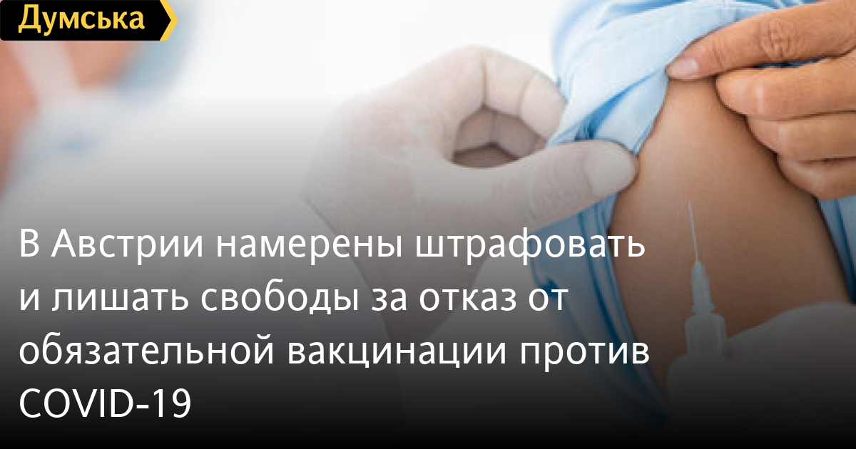 В Австрии намерены штрафовать и лишать свободы за отказ от обязательной вакцинации против COVID-19Власти Австрии планируют ввести штрафы и даже лишение свободы в качестве наказания за отказ от обязательной вакцинации против коронавируса. Соответствующий законопроект уже готов к рассмотрению, сообщает УНИАН со ссылкой на австрийские СМИ. Документ предлагает при первом отказе от прививки против коронавируса вызывать гражданина Австрии в районный административный орган. Если человек проигнорирует это приглашение, то через месяц его вызовут снова. За третьим отказом последует штраф в размере 3,6 тысячи евро или лишение свободы на четыре недели. В случае повторного отказа от вакцинации штраф может увеличиться до 7,2 тысячи евро. Законопроект планируют еще доработать. А в случае его принятия закон вступит в силу с февраля 2022 года и будет действовать в течение трех лет. Напомним, Австрия первой среди стран ЕС заявила о введении обязательной вакцинации от коронавируса для всех категорий граждан с 1 февраля 2022 года. СМЕРТЬ РОССИЙСКИМ ОККУПАНТАМ! Заметили ошибку? Выделяйте слова с ошибкой и нажимайте control-enter Новости по этой теме: 4 марта 2023: "Вакцини-довгожителі", або Як щеплення проти COVID-19 перетворилися в Україні на небезпечний ритуал 27 января 2023: МОЗ обязали опубликовать договоры на закупку вакцин против COVID-19: апелляционный суд удовлетворил иск журналиста "Думской" 11 января 2023: За неделю в Одессе зафиксировано 159 случаев ковида 4 января 2023: За неделю в Одессе зарегистрировано 113 случаев ковида |