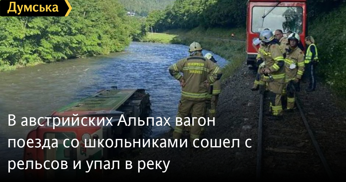 Один из вагонов поезда, следовавшего на узкоколейной железной дороге в долине реки Мур на юго-востоке Австрии, сошел с рельсов и упал в реку рано утром, 9 июля. Как сообщает «Европейская правда», в поезде ехали 54 школьника. 17 из них получили травмы, не представляющие угрозы для жизни. Нескольких пострадавших госпитализировали в соседние города, одного человека эвакуировали вертолетом. На месте работали около 30 представителей спасательных служб, 10 «скорых» и два вертолета «Красного креста». Причины аварии выясняются. СМЕРТЬ РОССИЙСКИМ ОККУПАНТАМ! Заметили ошибку? Выделяйте слова с ошибкой и нажимайте control-enter |