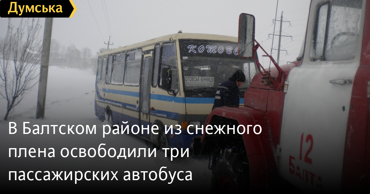Сегодня в Балтском районе Одесской области спасатели помогли выбраться из снежных заносов трем автобусам с 50 пассажирами. Как сообщает пресс-служба облГСЧС, первый вызов поступил в 08:33. Водитель автобуса ПАЗ, перевозивший 20 пассажиров по маршруту «Балта — Пужайково», из-за снега не смог преодолеть подъем. Через два часа на этом же отрезке дороги застрял другой ПАЗ, следовавший по маршруту «Подольск — Саврань» с 18 пассажирами. Около 13 часов на автодороге «Балта — Подольск» водитель автобуса «Эталон» (маршрут «Винница — Подольск», 12 человек) съехал в кювет. Во всех случаях спасатели вытащили автобусы из заносов. СМЕРТЬ РОССИЙСКИМ ОККУПАНТАМ! Заметили ошибку? Выделяйте слова с ошибкой и нажимайте control-enter |