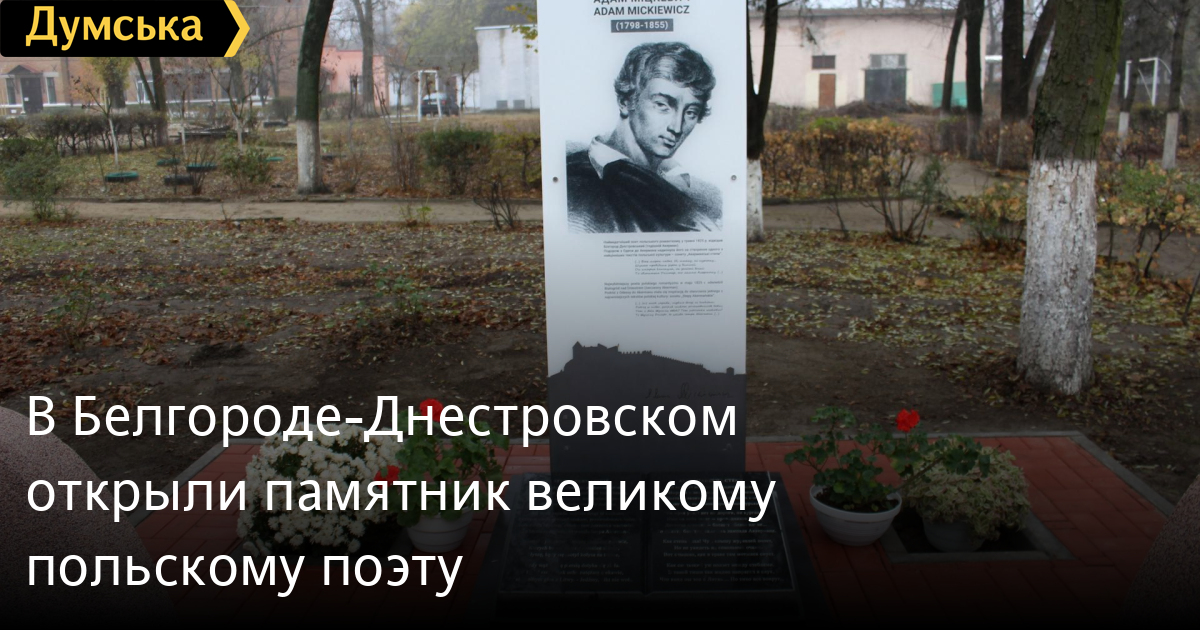 Памятный знак великому польскому поэту Адаму Мицкевичу открыли сегодня в Белгороде-Днестровском, на территории педагогического профессионального колледжа. Как сообщает пресс-служба муниципалитета, честь перерезать красную ленточку выпала генеральному консулу Польской Республики в Одессе госпоже Катажине Солек и мэру Аккермана Виталию Граждан. Великий польский поэт, высланный российским царем в Одессу, побывал в Аккермане в 1825 году. Вдохновленный уникальной природой тех мест, литератор написал свой сонет «Аккерманские степи»: «Всплываю на простор сухого океана, СМЕРТЬ РОССИЙСКИМ ОККУПАНТАМ! Заметили ошибку? Выделяйте слова с ошибкой и нажимайте control-enter |